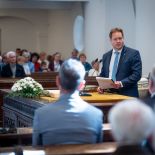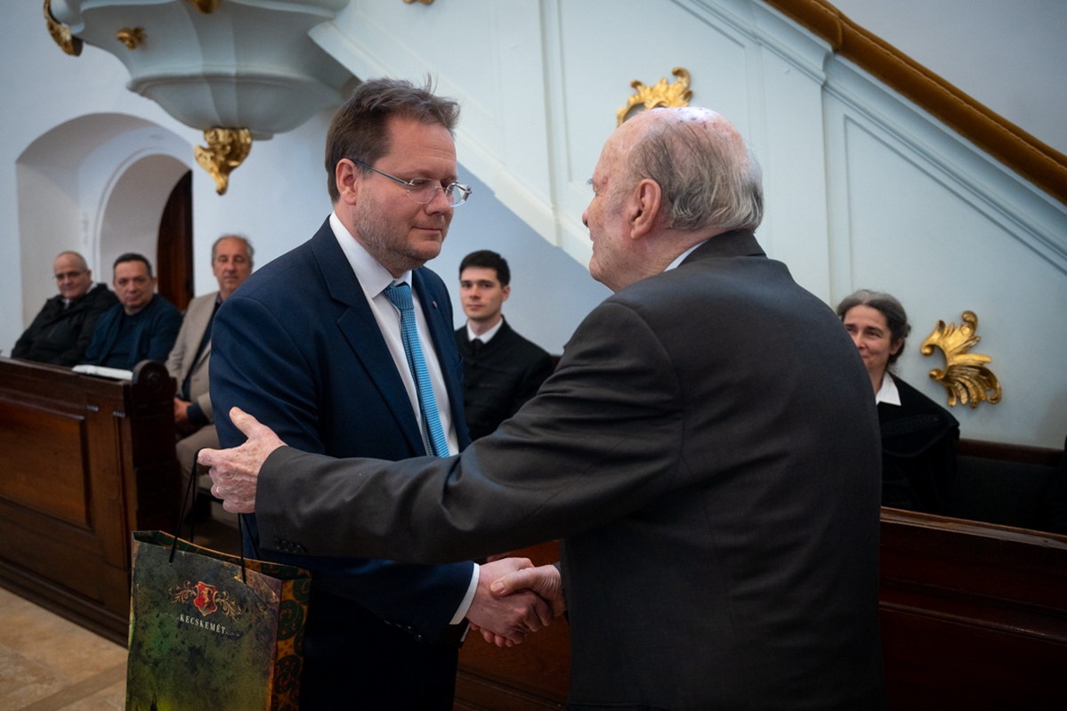 Az istentisztelet végén dr. Fekete Gábor (Fidesz-KDNP) Kecskemét alpolgármestere köszöntötte a városvezetés, Varga Nándor lelkész pedig a református közösség nevében a 90. születésnapján Varga Lászlót.