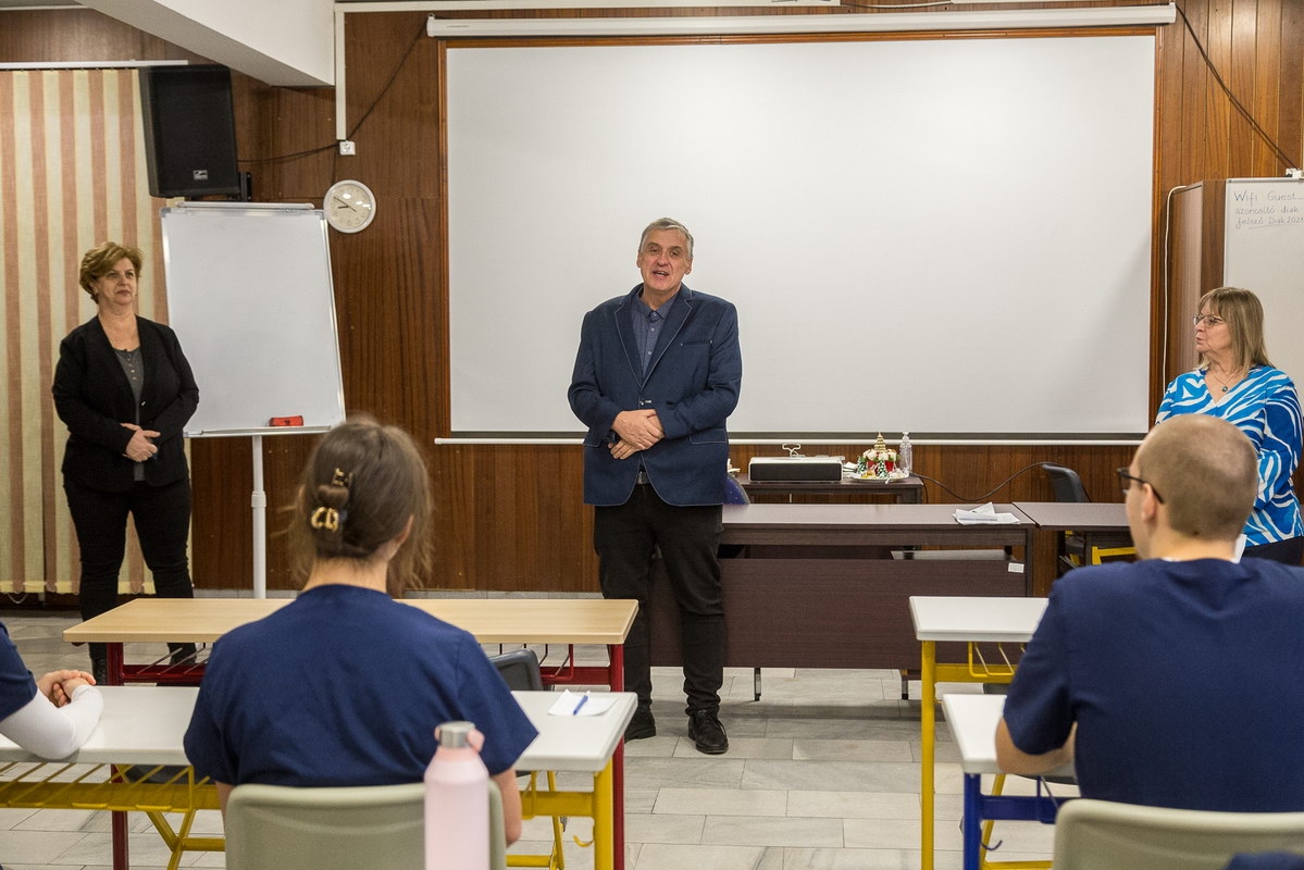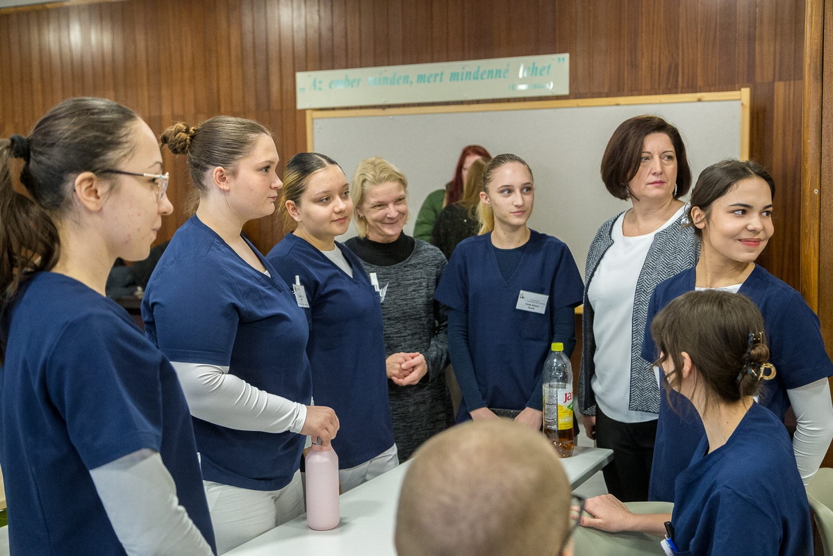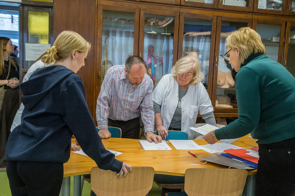 A Magyar Egészségügyi Szakdolgozói Kamara (MESZK) 2022-ben indította útjára országos szintű szakképzési versenyét a középfokú egészségügyi szakképzésben tanuló fiatalok számára. A kezdeményezés azóta hagyománnyá vált, idén már a IV. Kossuth Zsuzsanna Nemzeti Egészségügyi Szakképzési Verseny keretében mérhetik össze tudásukat a résztvevők. (Fotók: Vincze József)