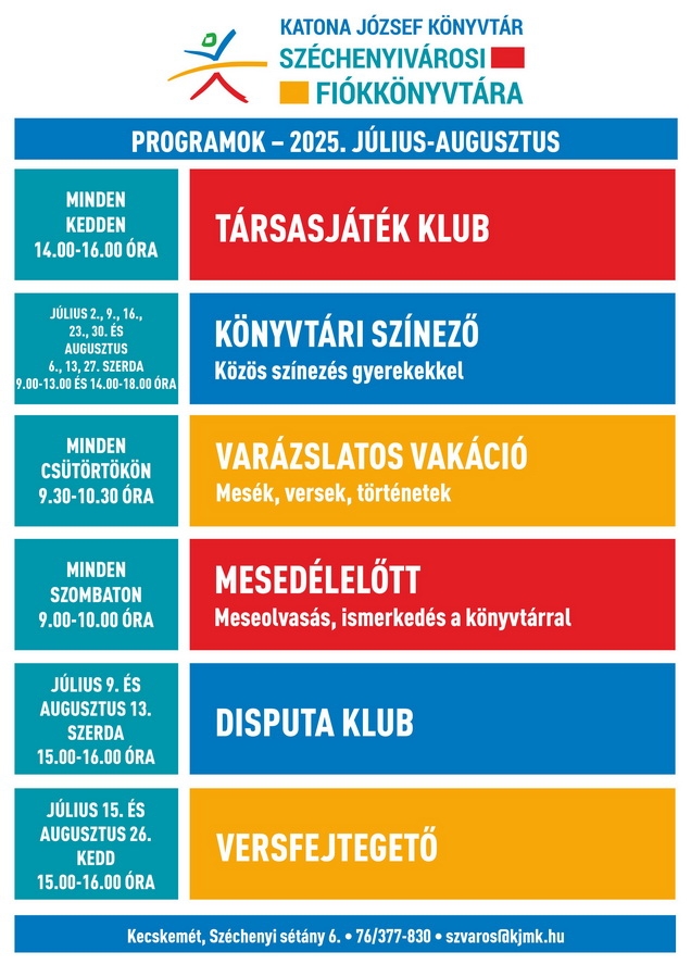Cikkünk képgalériájában (lent) megtekinthető a Katona József Könyvtár kiemelt programkínálata 2025. augusztus 18. és 2025. augusztus 24. között.