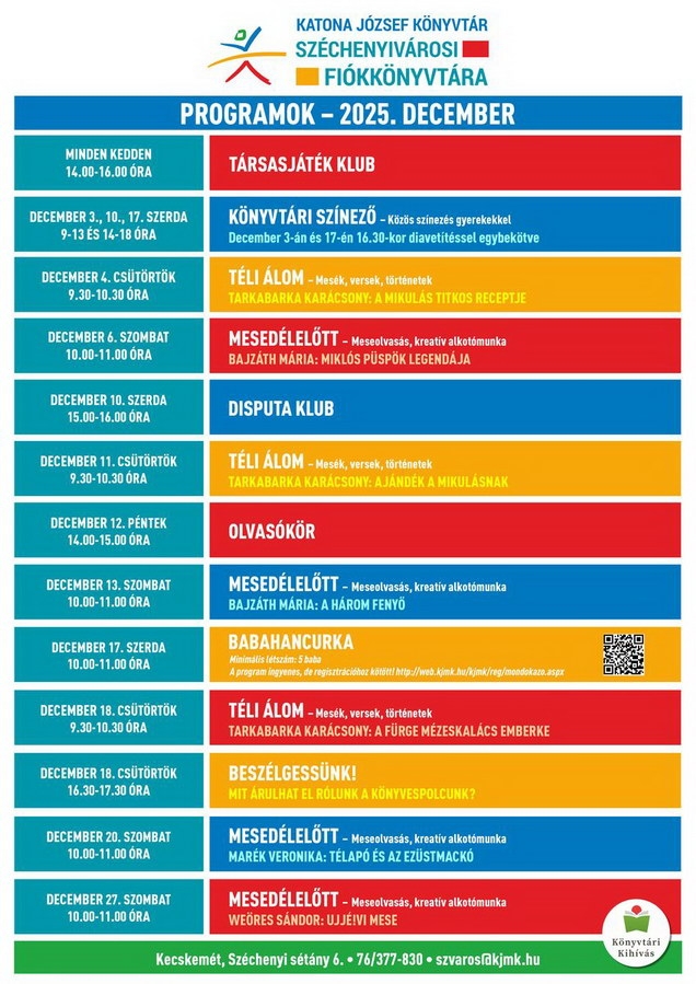 A Katona József Könyvtár 2025/51. heti programkínálata