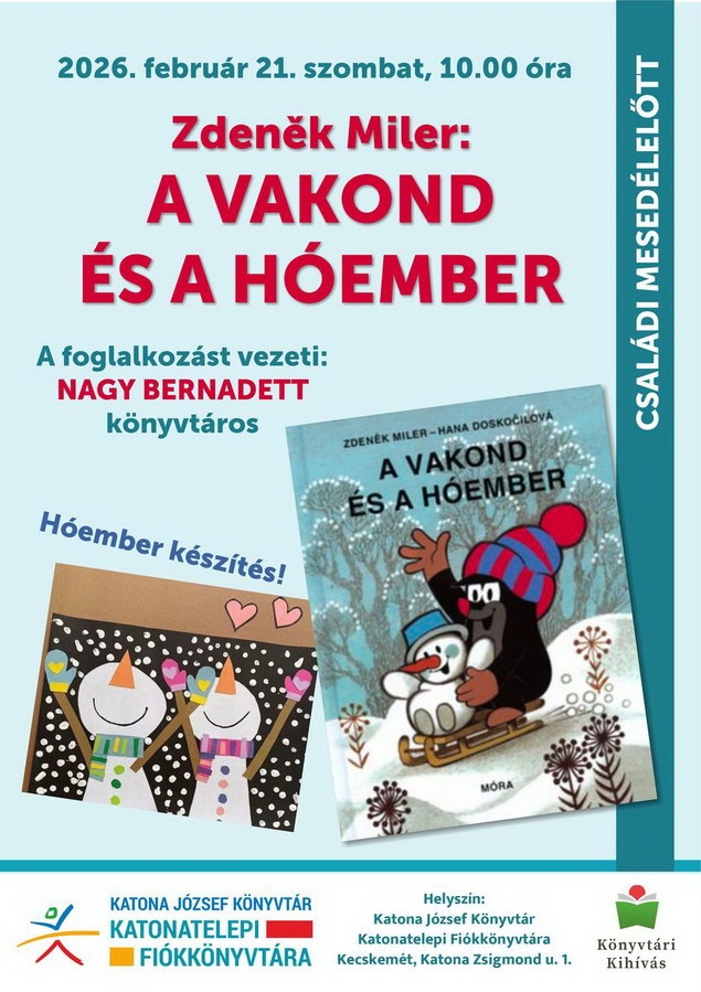 Cikkünk képgalériájában (lent) megtekinthető a Katona József Könyvtár kiemelt programkínálata 2026. február 16. és 22. között.