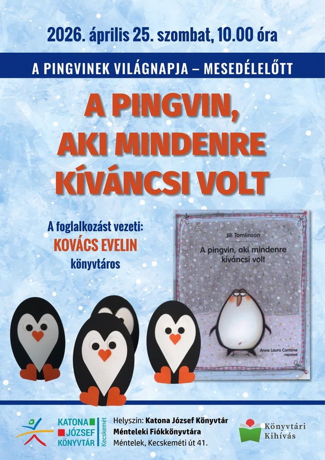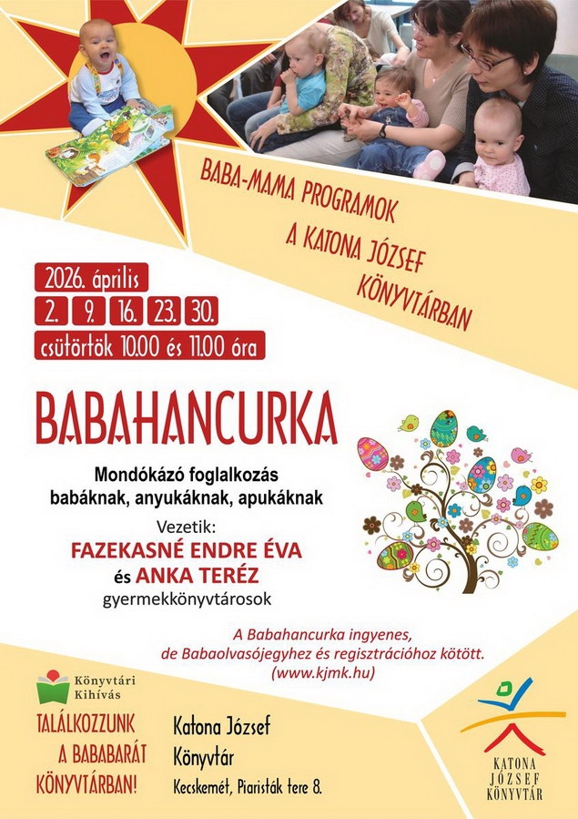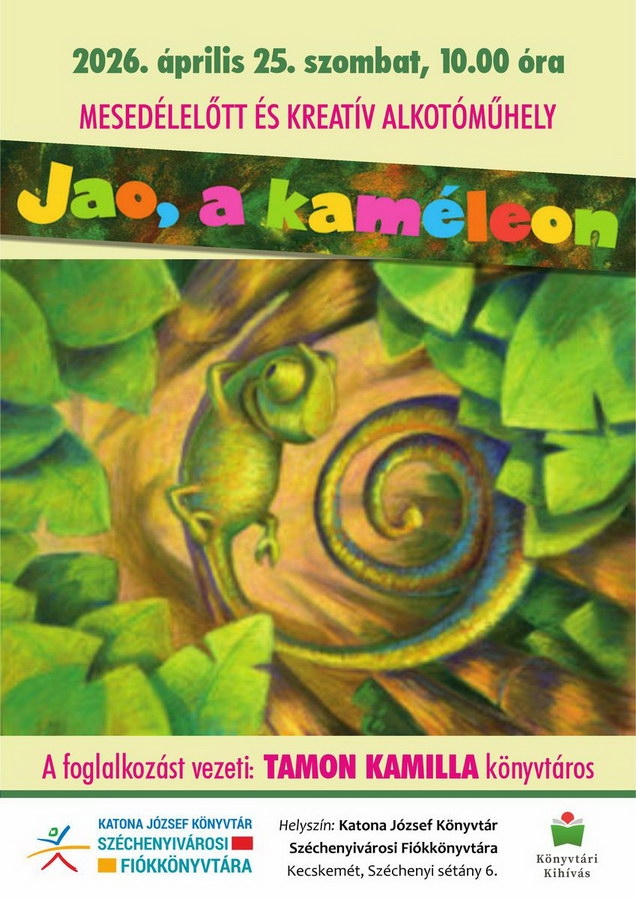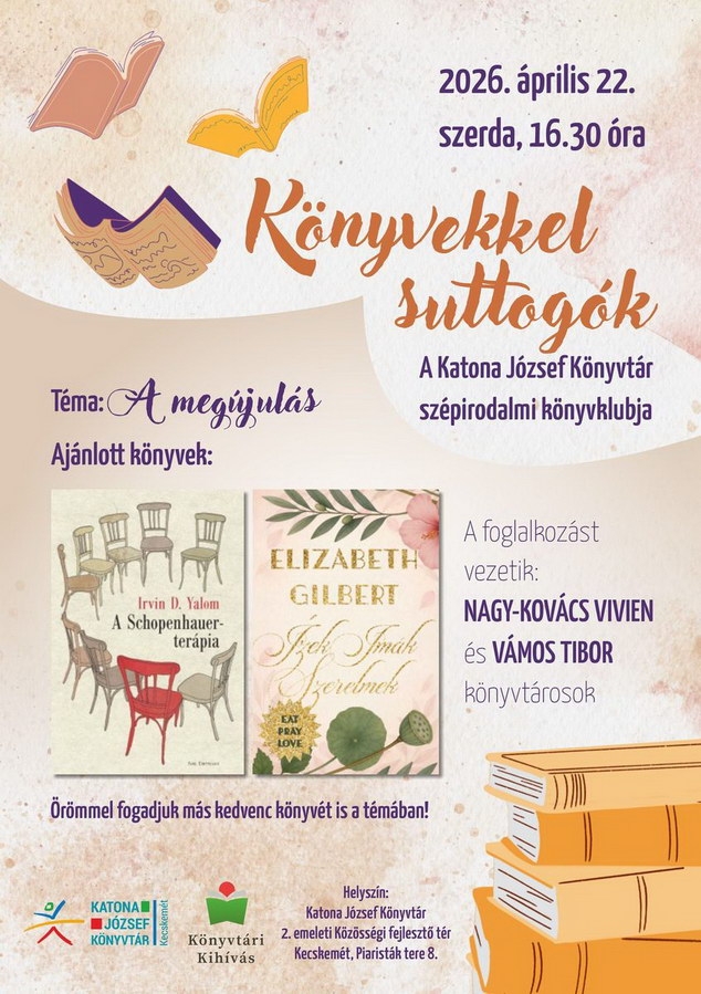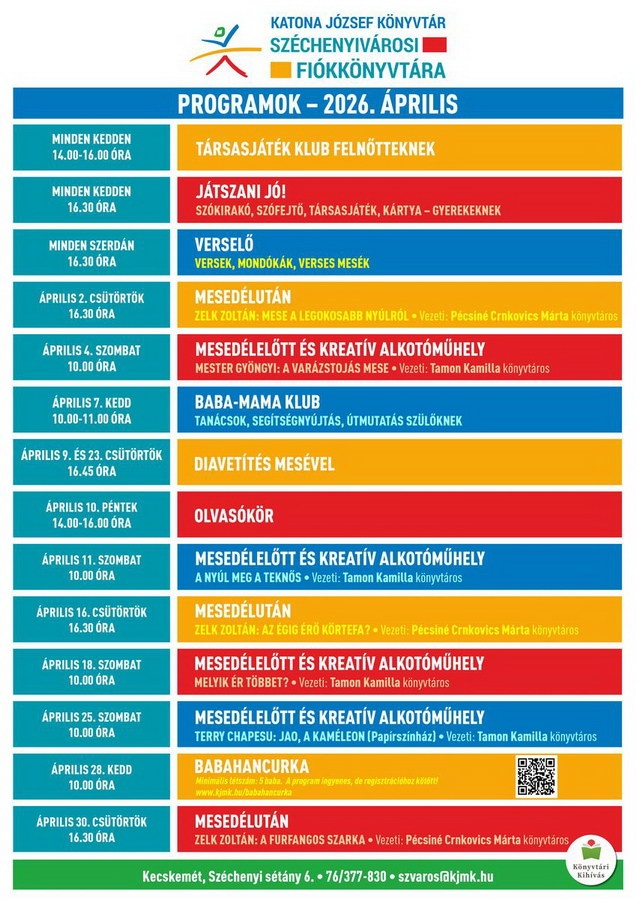 Cikkünk képgalériájában (lent) megtekinthető a Katona József Könyvtár kiemelt programkínálata 2026. április 20. és április 26. között.
