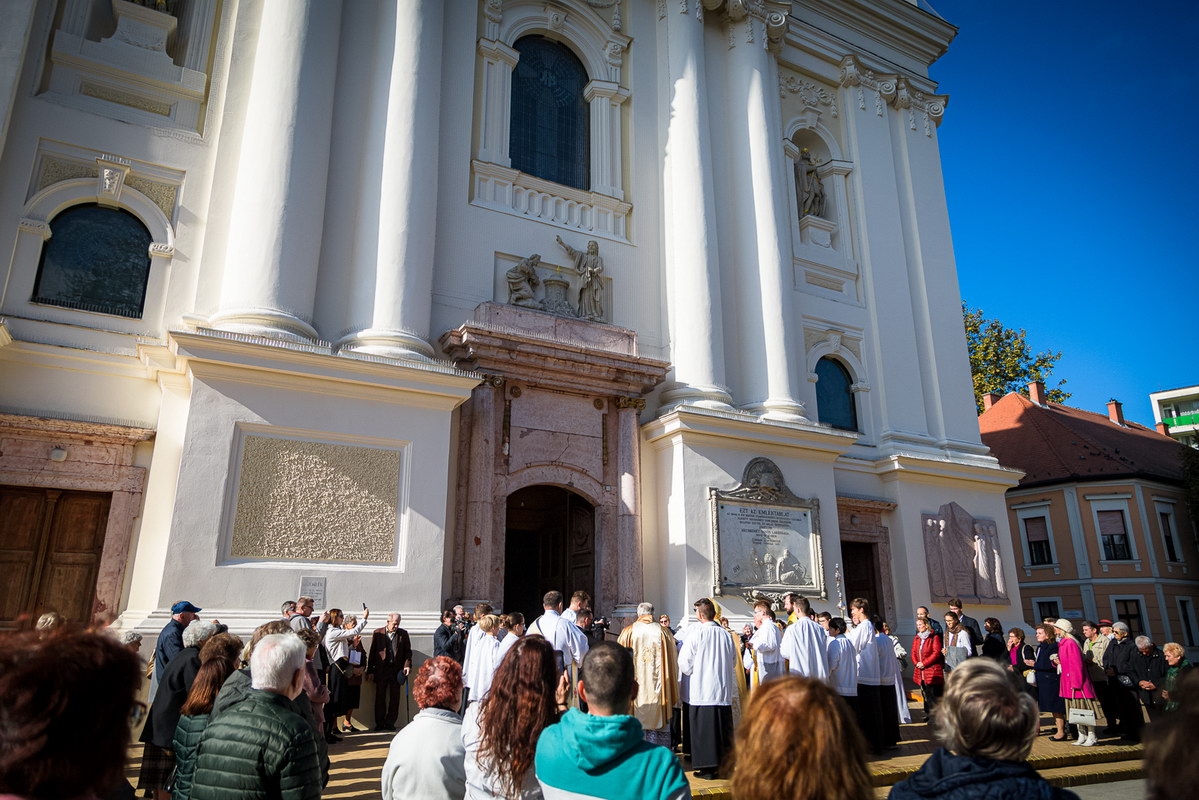 2025. október 12-én, vasárnap délelőtt 10:30-kor ünnepélyes szentmise keretében került sor a kecskeméti Nagytemplom megáldására. A különleges alkalmon Dr. Bábel Balázs, a kalocsa-kecskeméti érsek áldotta meg a templom eddig elkészült felújítását. (Fotók: Vincze József)