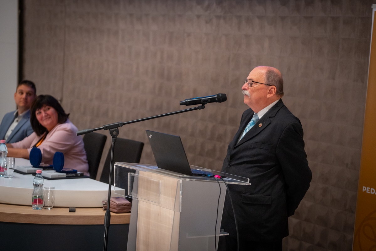 Dr. Béres Gábor, a Neumann János Egyetem GAMF Műszaki és Informatikai Kar tudományos dékánhelyettese beszédében kifejtette: „Az iskola egy poros múzeum", azt gondolom az Önökké is az és a miénk is az, és a konkurenciáinké is az, egészen addig amíg nem tudjuk valahogy az iskolát megtölteni valamilyen örökérvényű társadalmi értékkel. Talán, amit kiemelnék az a megértő, odaadó figyelem. Persze azt is tudom, hogy a mostani generációnak nem olyan könnyű a figyelmét felkelteni, talán ez az, ami a legfontosabb a tudásátadáson túl, hogy ezeket a fiatalokat megnyerjük.