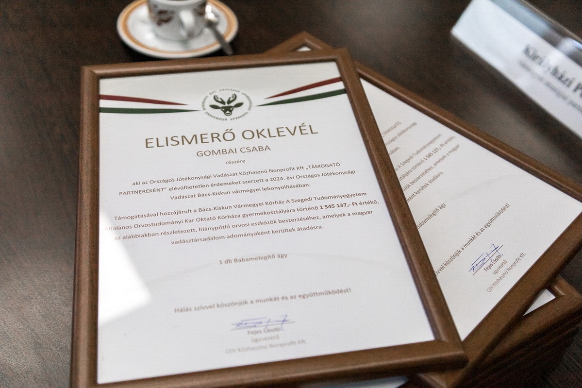 Átadták a decemberi Jótékonysági Vadászat adományát a kecskeméti kórházban