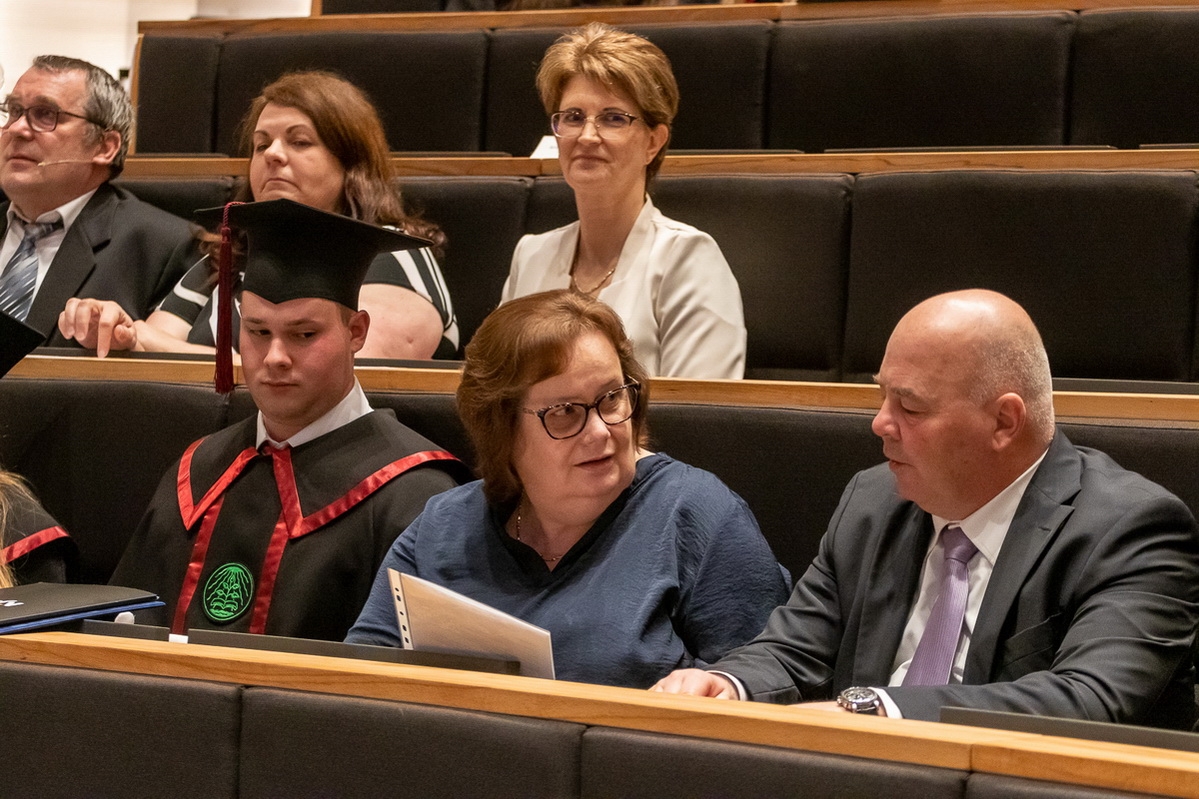 Délelőtt a Neumann János Egyetem GAMF Műszaki és Informatikai Karának Diplomaátadó Ünnepi Szenátusi Ülésén dr. habil. Fülöp Tamás rektor köszöntője után Kecskemét városvezetése nevében Gaál József (Fidesz-KDNP) alpolgármester búcsúzott a hallgatóktól.