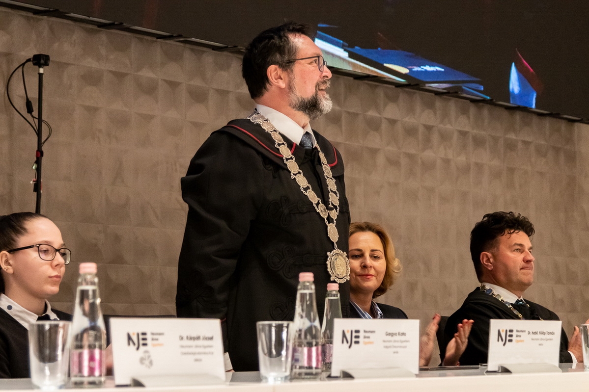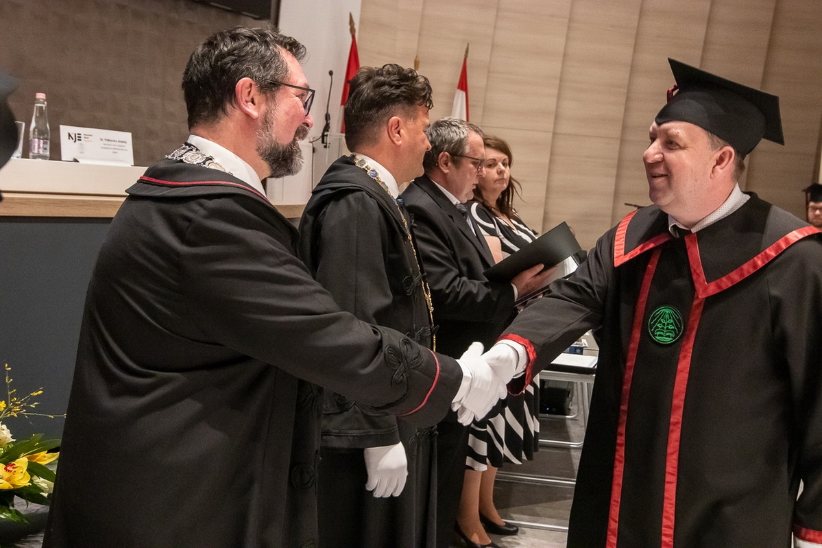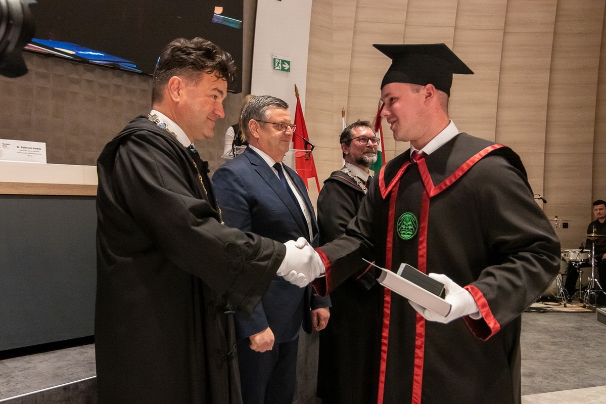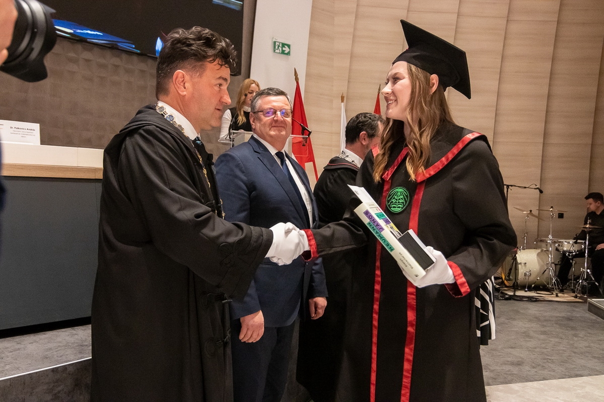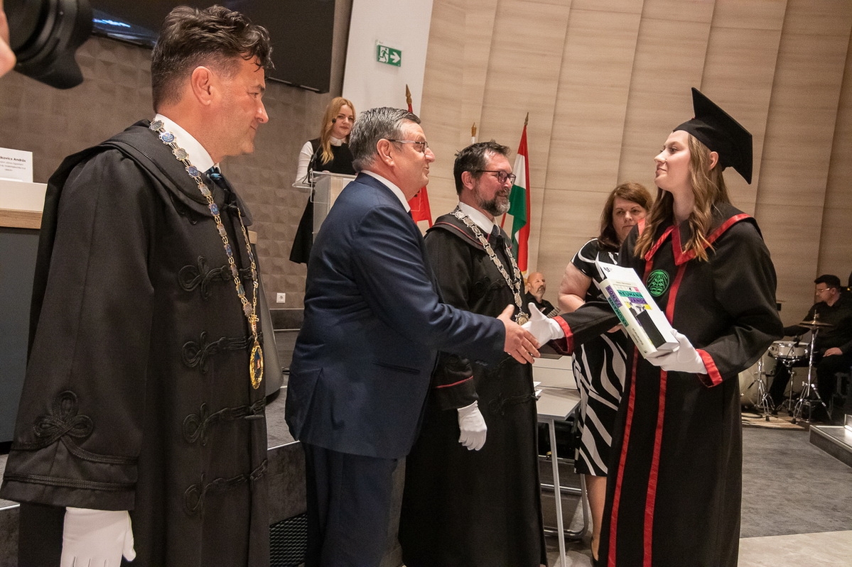 A végzett hallgatók mellett kiemelkedő munkája elismeréseként az Intézmény, a szenátus javaslata alapján címzetes egyetemi docens címet adományozott Megyeri Szabolcs részére.