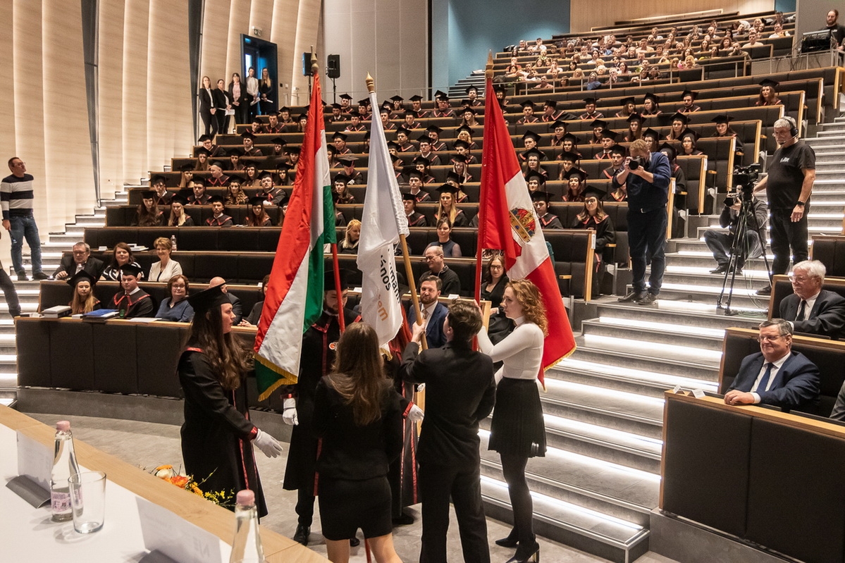 A Neumann János Egyetem Diplomaátadó Szenátusi Ülését 2024. február 16-án, tartották a Campuson. Az egyetem iránti jelentős érdeklődést, illetve az egyetemen végzett hallgatók létszámának növekedését mutatja, hogy ezúttal nem egy, hanem két diplomaosztót kellett tartani pénteken. (Fotók: Vincze József és dr. Szeberényi Gyula Tamás facebook)