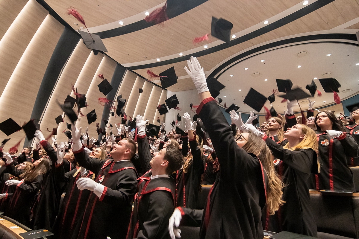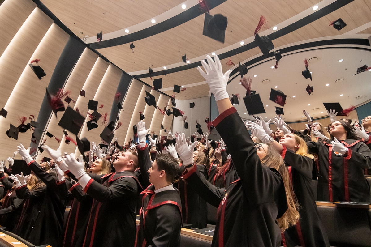 Mindkét eseményt - immár hagyományosan - a végzett hallgatók sapkafeldobása zárta.