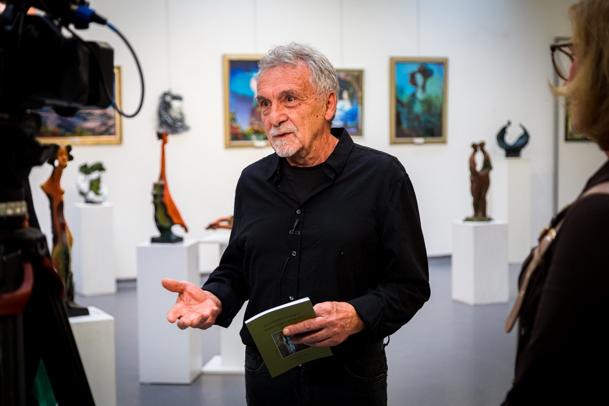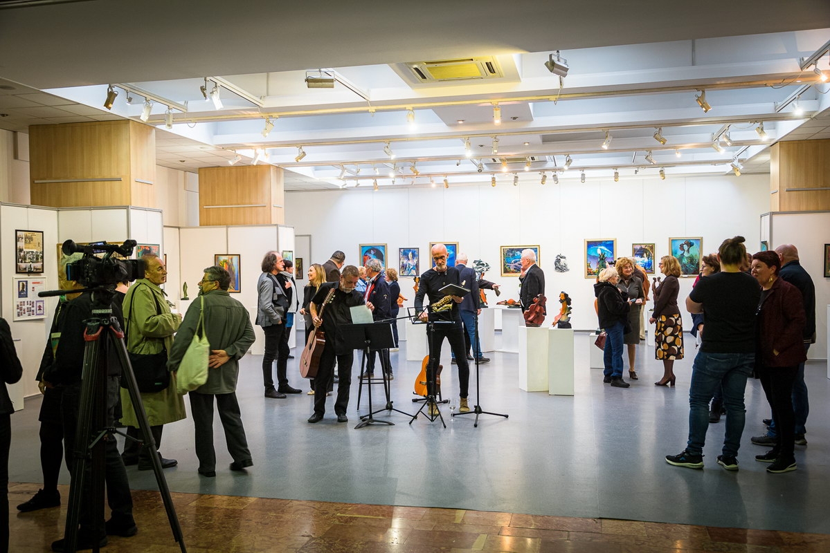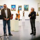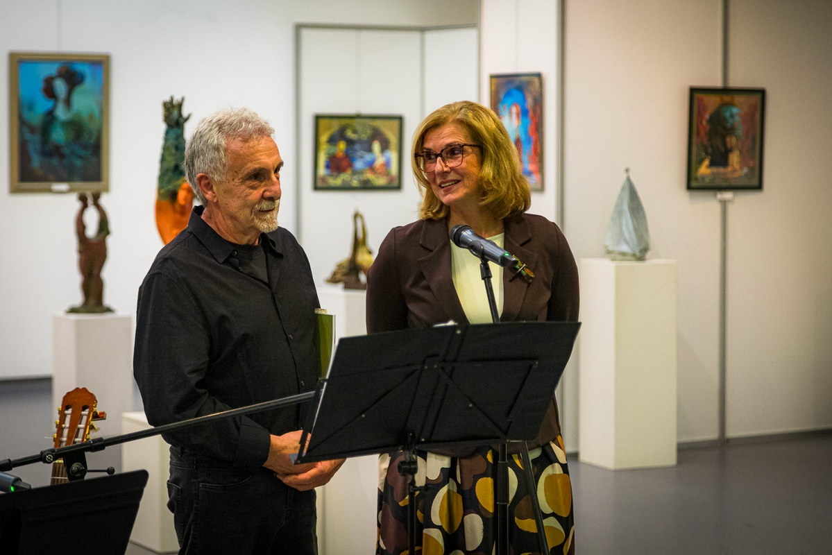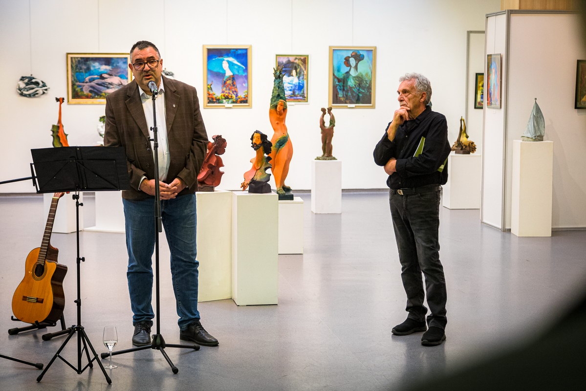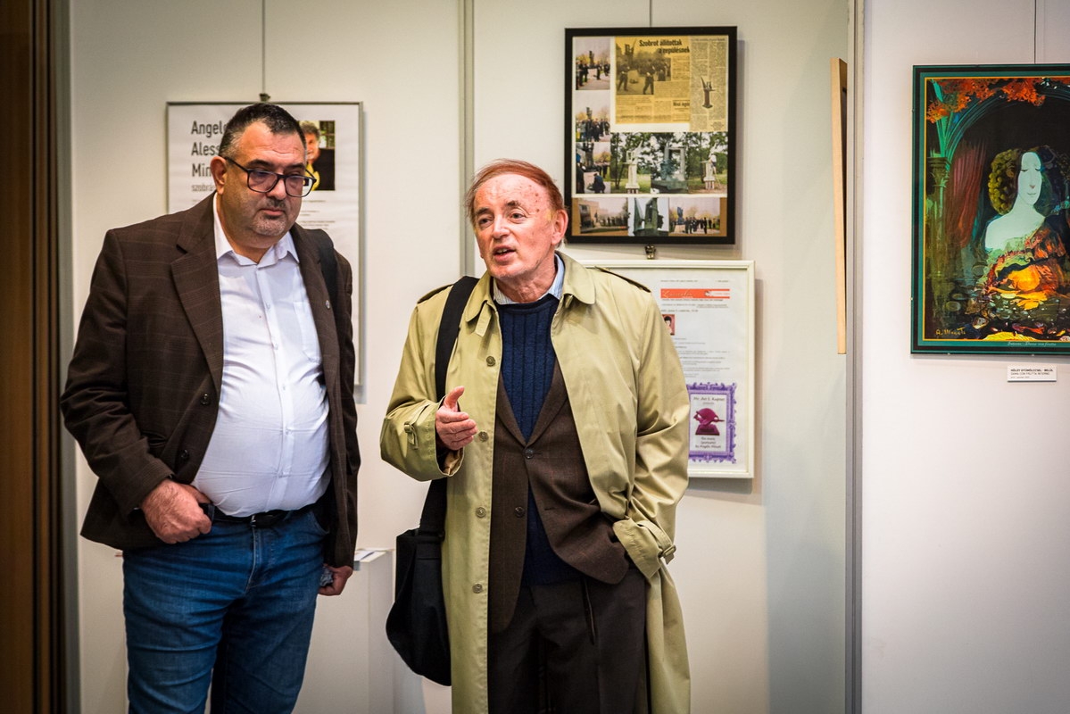 Ünnepélyes hangulatban nyílt meg Angelo Minuti, Olaszországban született, de már évtizedek óta Magyarországon élő művész kiállítása 2025. október 10-én, pénteken délután a Hírös Agóra Kulturális Központ kamaratermében. (Fotó: Vincze József)