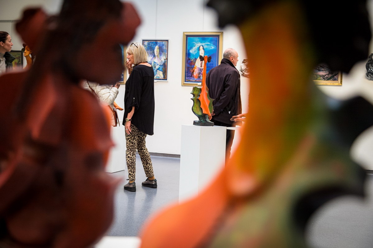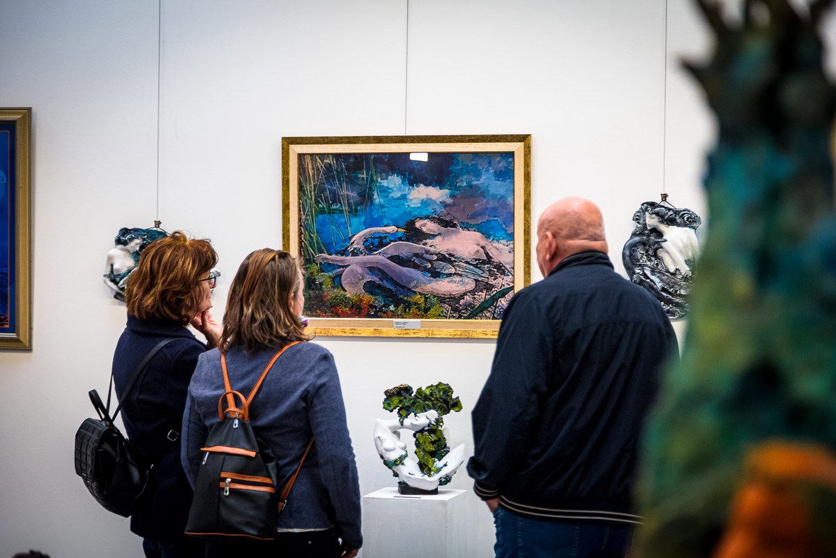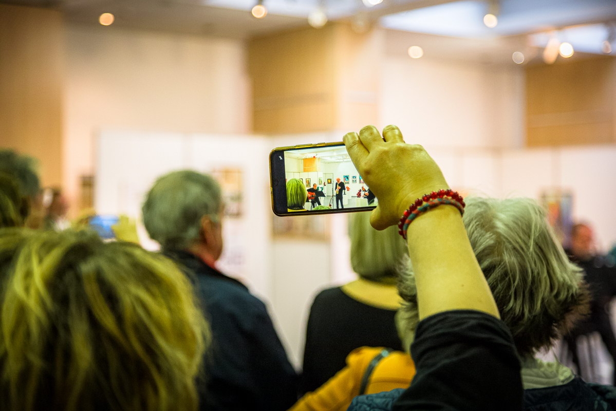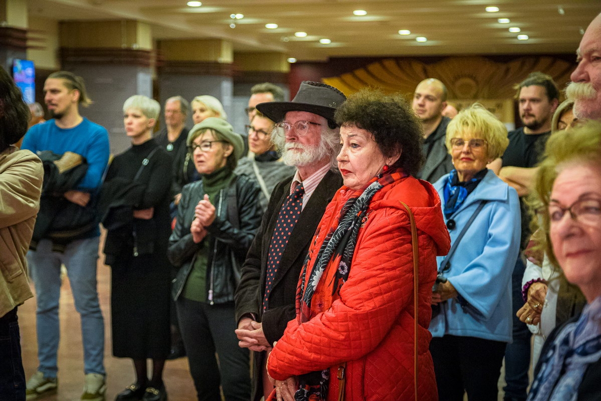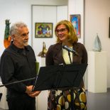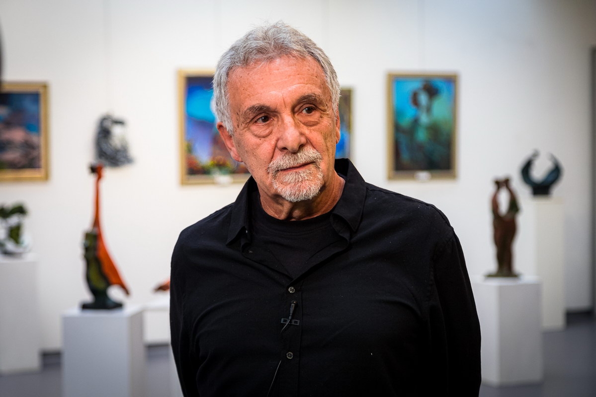 Ünnepélyes hangulatban nyílt meg Angelo Minuti, Olaszországban született, de már évtizedek óta Magyarországon élő művész kiállítása 2025. október 10-én, pénteken délután a Hírös Agóra Kulturális Központ kamaratermében. (Fotó: Vincze József)