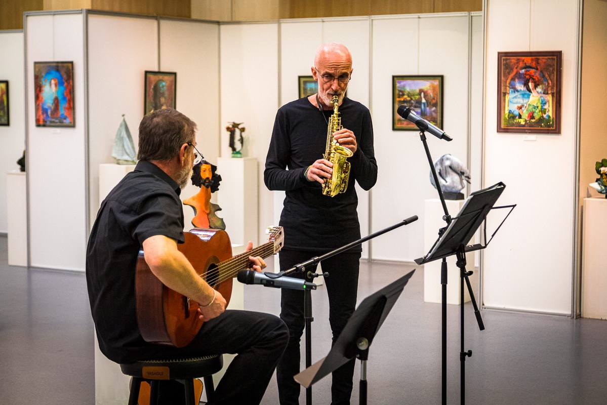 A megnyitó hangulatát az ORLANDUO formáció - Palotás Endre szaxofonos és Pelle József gitáros - közreműködése tette teljessé, akik zenei aláfestéssel idézték meg a mediterrán és a magyar kultúra találkozását.