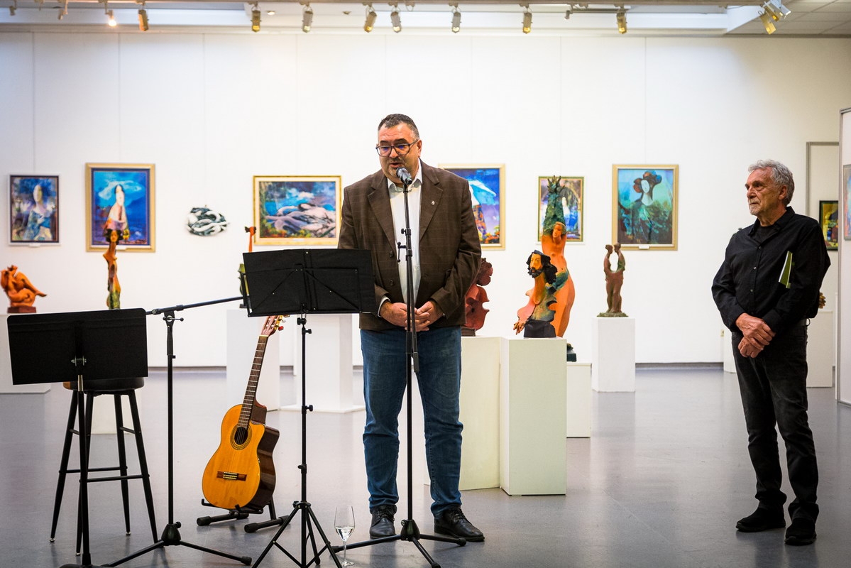 A tárlatot dr. Mák Kornél, a Bács-Kiskun vármegyei közgyűlés alelnöke nyitotta meg, aki beszédében kiemelte a művész életútjának és alkotói stílusának különleges kettősségét: