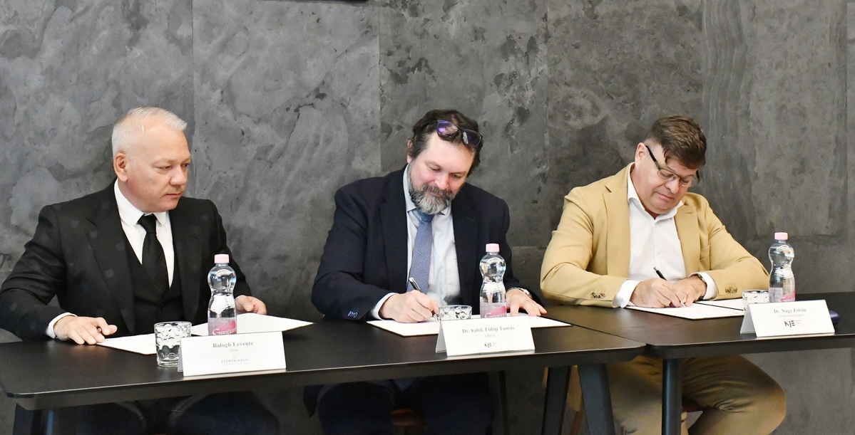 2024. május 3-án került sor a Neumann János Egyetem és a Szentkirályi Magyarország együttműködési megállapodásának ünnepélyes aláírására. Az ese együttműködési megállapodásának ményen köszöntőt mondott Szemereyné Pataki Klaudia (Fidesz-KDNP) Kecskemét polgármestere, dr. habil. Fülöp Tamás rektor és Balogh Levente, a cég ügyvezetője.