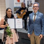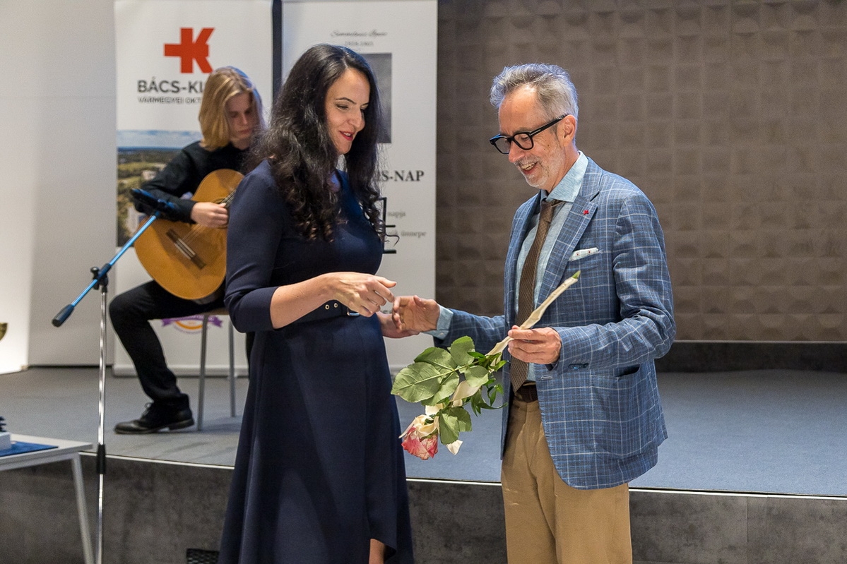 Gitárvirtuóz előadásával kápráztatta el a közönséget Bara Ákos, a Kodály Iskola szakgimnáziumának tanítványa, tálentuma, aki Zoran Korovjev világhírű szerb gitárkészítő mesterhangszerét is magával hozta.