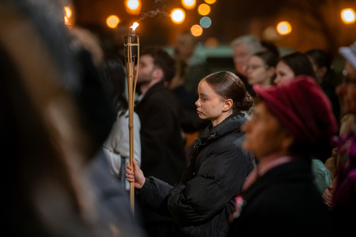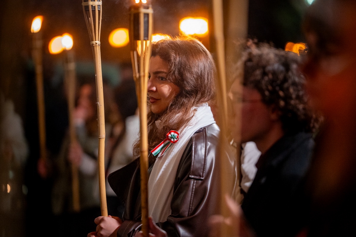 Fáklyás-zenés megemlékezéssel emlékeztek a márciusi ifjakra az Ókollégium épülete előtti téren