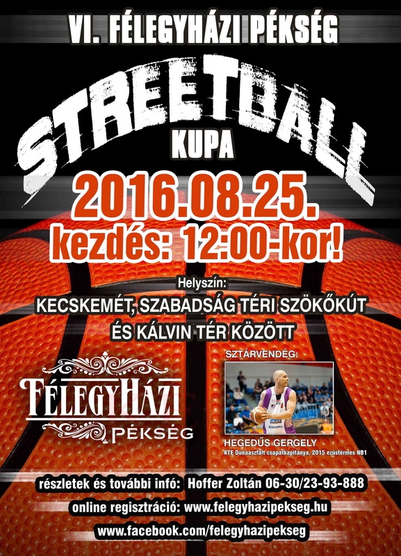 Idén immár hatodik alkalommal rendezi meg Kecskeméten a Streetball kupát a Félegyházi Pékség. Várják a pattogtatni vágyó fiú, lány és vegyescsapatok jelentkezését a különböző korosztályokban. Izgalmas mérkőzések, hárompontosdobó verseny. A legjobbakat éremmel és kupával díjazzák.