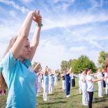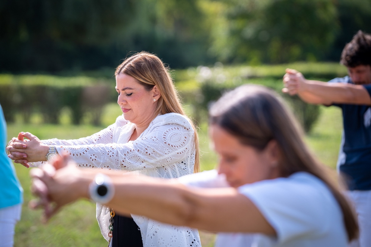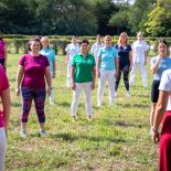A nap egyik legnépszerűbb eseménye a közös torna volt 11:00 órakor, amelyet az Egészségkertben tartottak.