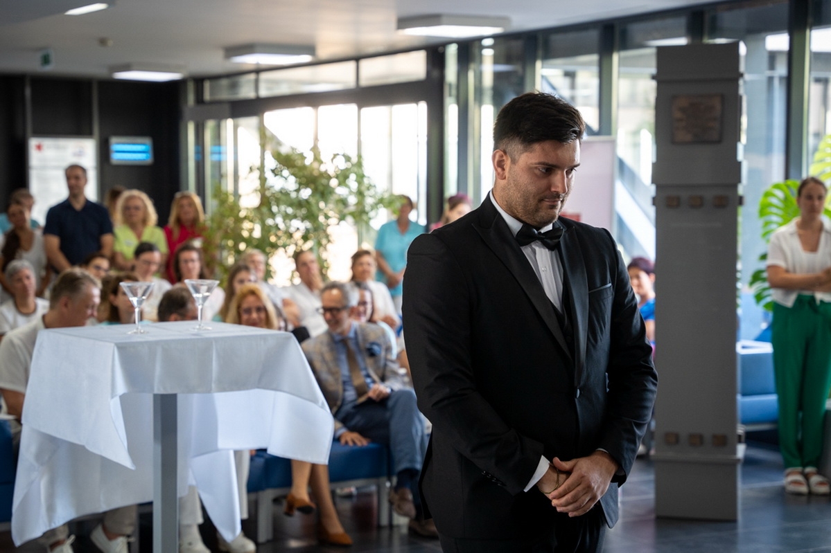 A Fizio- és Mozgásterápiás Osztály egy különleges kiállítással készült, amelynek ünnepélyes megnyitójára 10:00 órakor került sor a kórház Lift Galériájában. A tárlat bemutatja az osztály munkáját, eszközeit és szemléletét - egyúttal lehetőséget ad arra is, hogy a látogatók jobban megismerjék a fizioterápia gyakorlati hasznát a gyógyításban és a prevencióban. A megnyitón Dr. Óváry Csaba PhD főigazgató, Dr. Boda Tamás osztályvezető főorvos, valamint Goldea Krisztina, a kórház vezető gyógytornásza köszöntötték a megjelenteket. A hangulatról pedig nem más gondoskodott, mint Király Amanda gyógytornász és táncospárja, Hegedűs Máté, akik többszörös Európa- és világbajnoki címmel rendelkeznek.