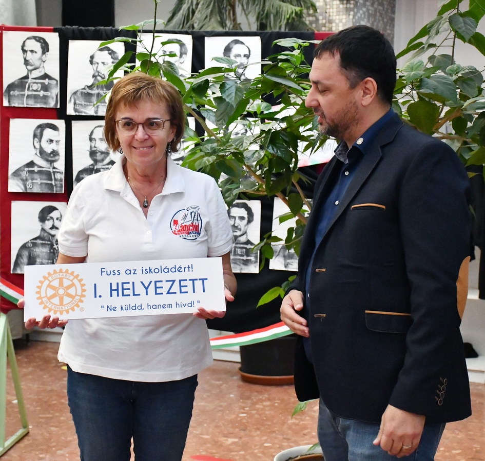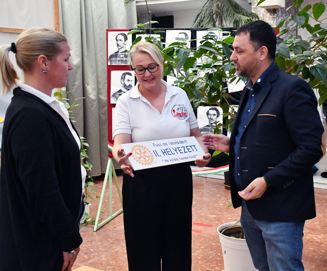 A jutalmak ünnepélyes átadására 2025. október 13-án, hétfőn 10:00 órakor került sor az iskolában, ahol Bognár Péter, a Rotary Club Kecskemét elnöke, valamint Riczu Péter, a Club egyik tagja személyesen adta át a nyereményeket a diákoknak.