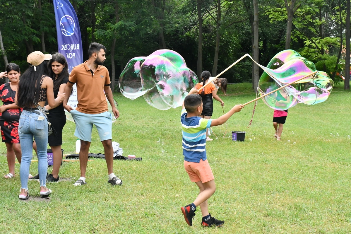 Nagy sikere volt az óriás buborék shownak és persze az ingyen palacsintáért is sorban álltak kicsik és nagyok.