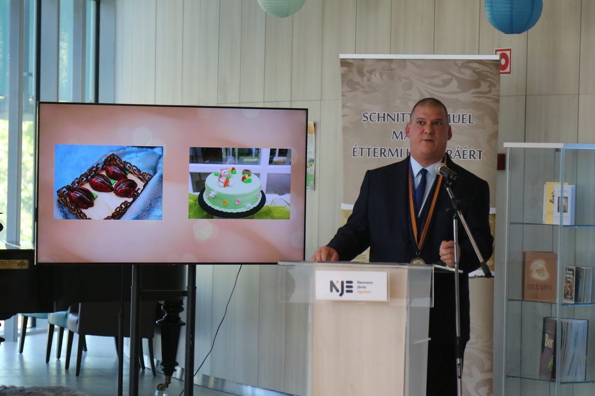 A kiállítás ünnepélyes megnyitóján Dr. habil. Fülöp Tamás köszöntötte a vendégeket, aki beszédében kiemelte a Neumann János Egyetem legdinamikusabban fejlődő Kara a csaknem 10 éves Gazdaságtudományi Kar és azon belül is 2023 óta töretlenül felívelő népszerűségnek örvend a Turizmus-Vendéglátás Tanszék. A köszöntőt követően Korenika Attila a Schnitta Sámuel Magyar Éttermi Kultúráért Egyesület elnöke, a Gazdaságtudományi Kar oktatója méltatta Schnitta Sámuel életúját, valamint elmondta: „Ez a kiállítás nemcsak Schnitta Sámuel életútját mutatja be, hanem egyben tisztelgés mindazok előtt, akik a vendéglátásban dolgoztak és dolgoznak ma is - elhivatottsággal, szakmai alázattal és szenvedéllyel. Külön tisztelettel kell megemlékeznünk Szécsi Valériáról egyesületünk elhunyt tagjáról, akinek egyedülálló gyűjteménye nélkül ez a kiállítás nem jöhetett volna létre."