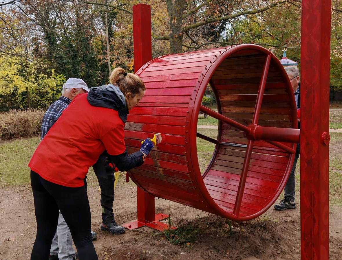 Eredményes közösségi munkanapon van túl a Hunyadiváros, ahol önkéntesek és támogatók közreműködésével folytatódott a játszótér felújítása. Megtörtént a faelemek kezelése, a játékok festése, a szükséges javítások elvégzése, valamint a park alapos takarítása is.