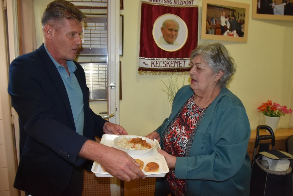 - Élmény ide jönni, mert itt családtagként köszöntenek. Ahol pedig jól érzi magát az ember, ott ünnepli a születésnapját - fogalmazott az ebédlőben Jánosi István, akit Farkas P. József, a szociális-közművelődési intézmény alapító-igazgatója úgyszintén köszöntött. Ezt követően Jánosi István személyesen osztotta ki ételadományát: 120 adag lecsós rizses húst, kenyérrel, süteménnyel.