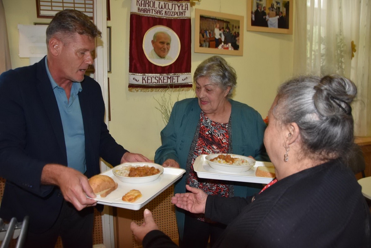 Jánosi István (Fidesz-KDNP), a kecskeméti 9. egyéni választókerület megválasztott önkormányzati képviselője 54 évvel ezelőtt, 1970. május 3-án látta meg a napvilágot. Ebből az alkalomból 2024. május 3-án, pénteken szeretetebéd felajánlásával kedveskedett a Wojtyla Barátság Központ gondozottjainak. (Fotók: Mátyus István)