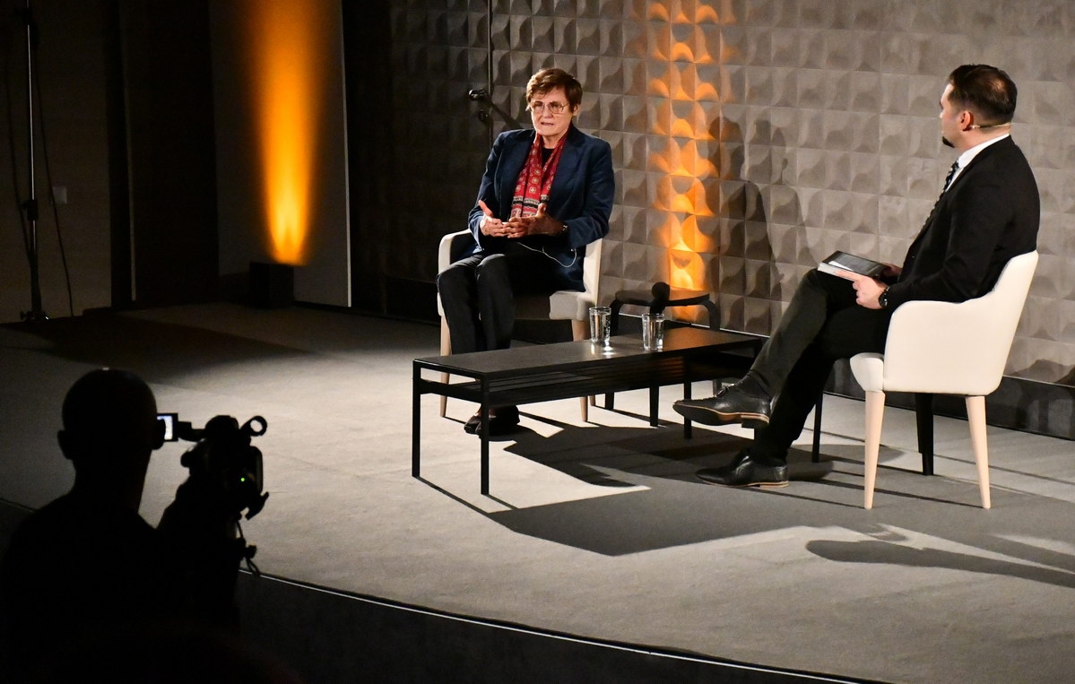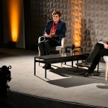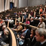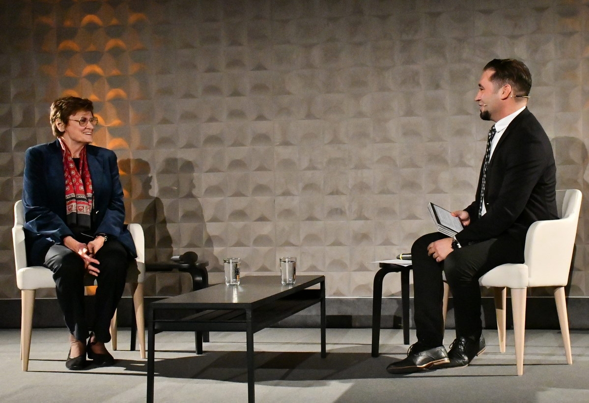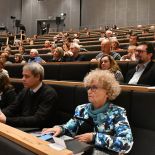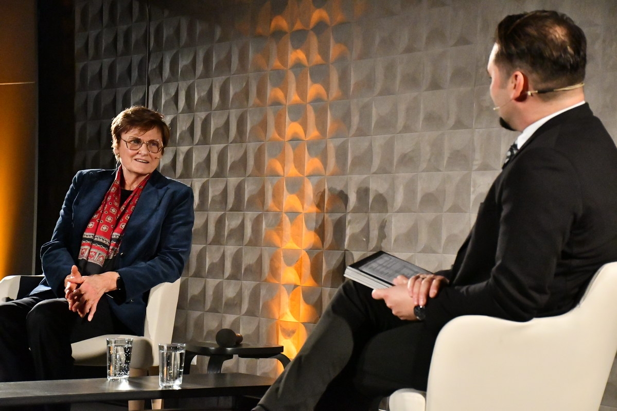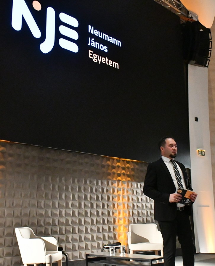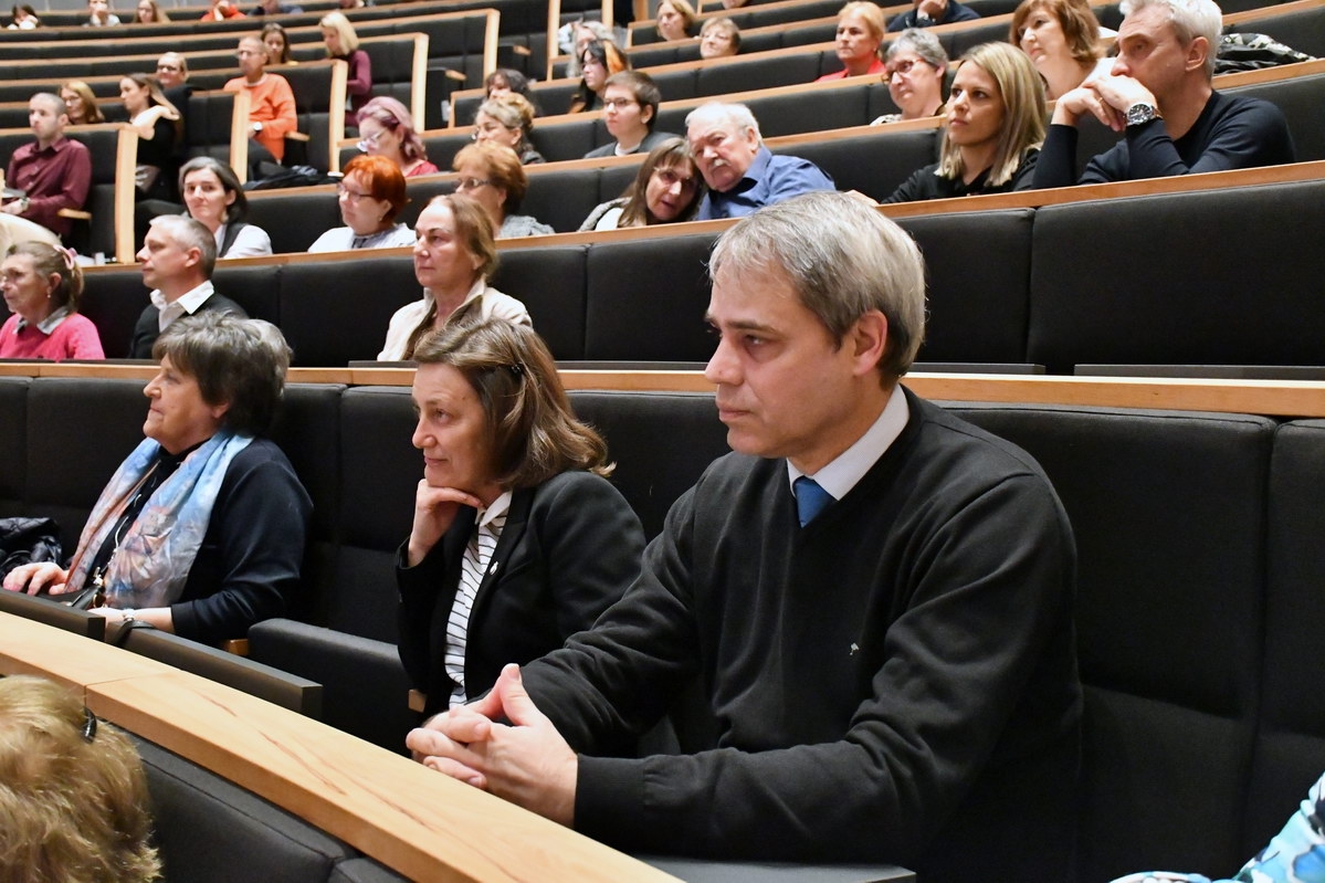 Karikó Katalinnal a nagyelőadóban Árvay Zoltán, a Neumann János Egyetemért Alapítvány kommunikációs vezetője beszélgetett. Ebben a Nobel-díjas magyar biokémikus életútjának meghatározó állomásait elevenítették fel. Elmondta többek között, hogy a kisújszállási szülői házban 10 éves koráig egy szobában lakott a család: a szülei, a nővére és ő. Az iskolában - hiszen Karikó Katalin is „Ratkó gyerek", ötvenen voltak az osztályban.