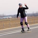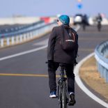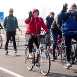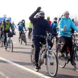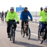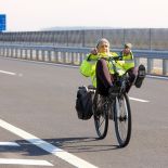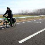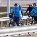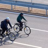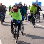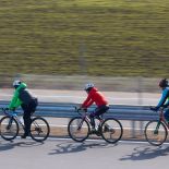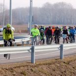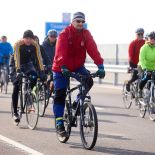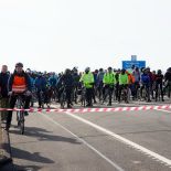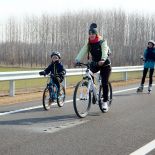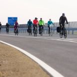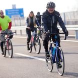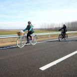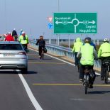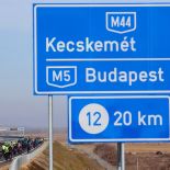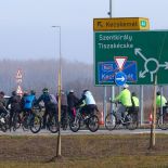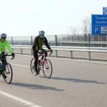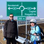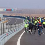 Kerékpárosok és görkorcsolyások az M44-es autóút Szentkirály – Kecskemét szakaszán