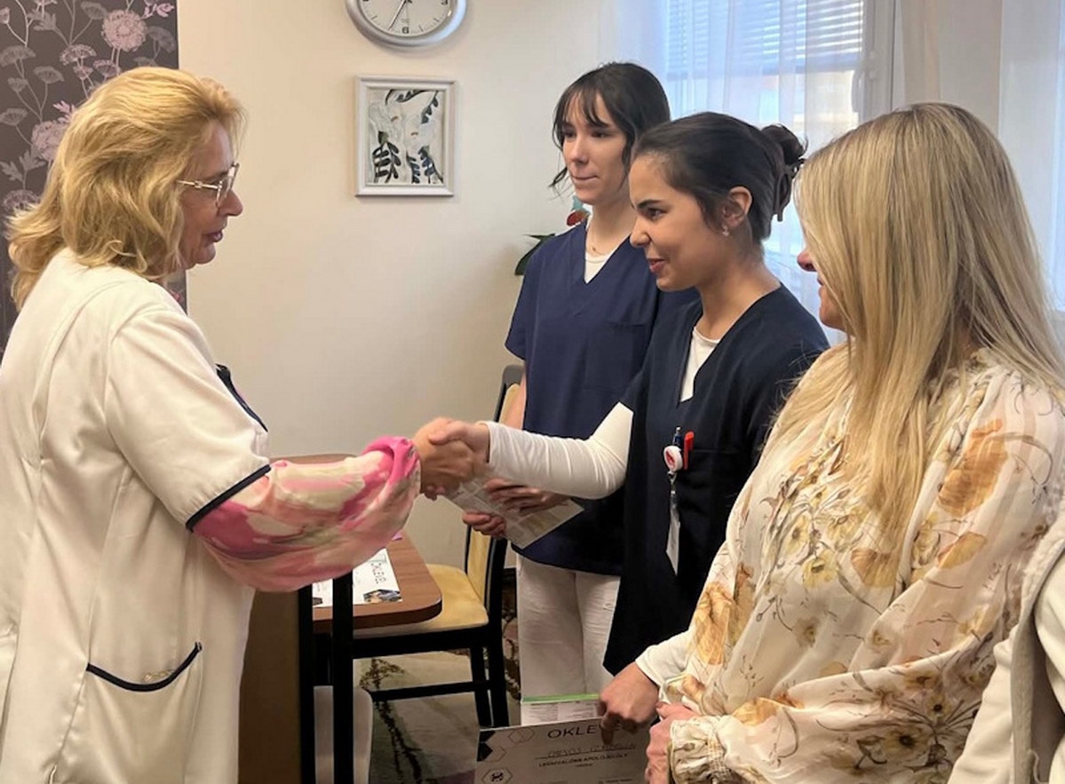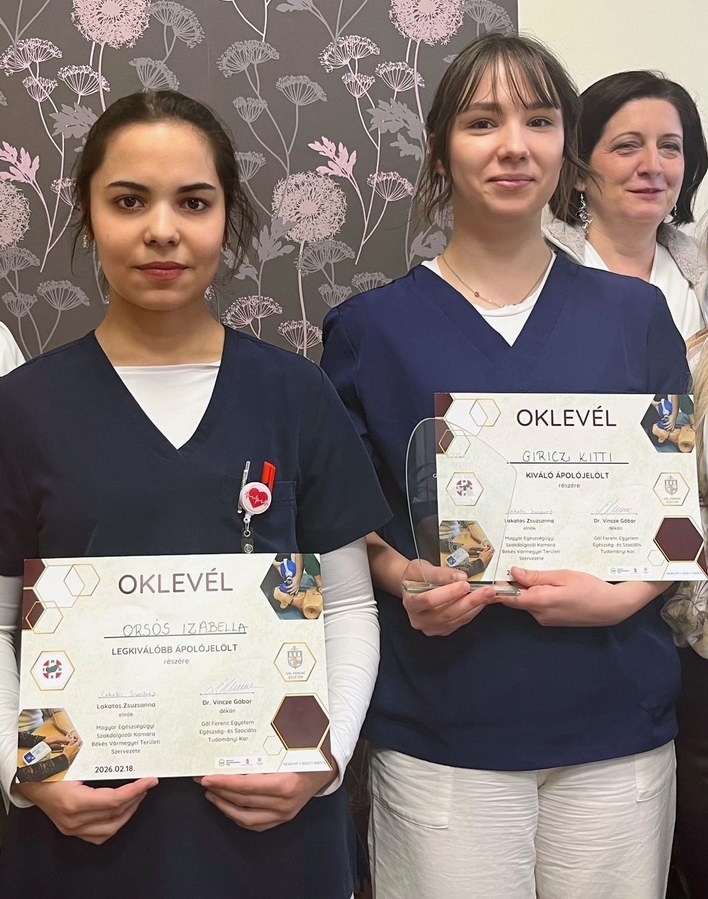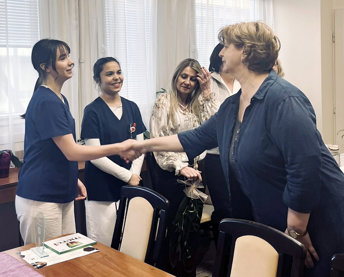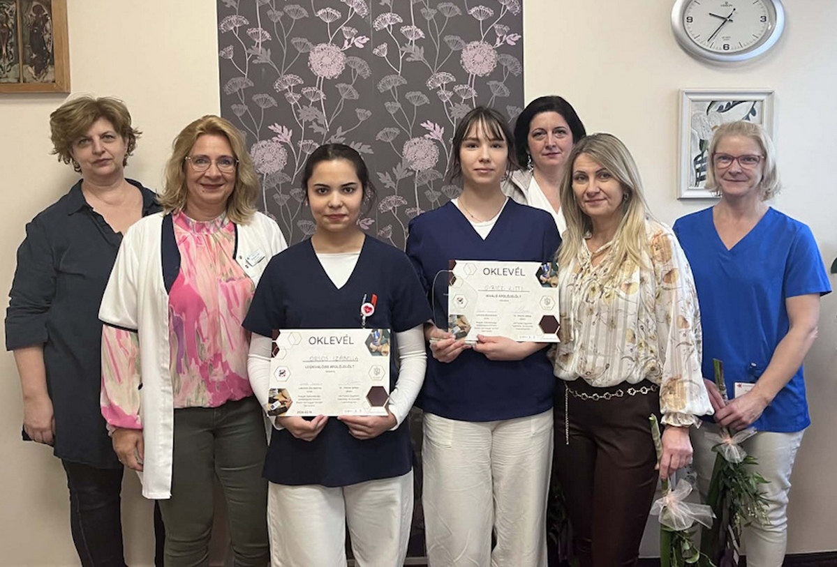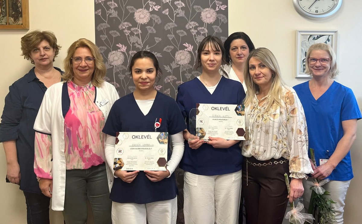 Az ápolási igazgató egyúttal elismerését fejezte ki az elméleti képzést biztosító technikum szakmai igazgatóhelyettesének, Járóné Fekete Anitának, valamint a felkészítő oktatóknak, Pusztai Klaudiának és Bogdány Líviának, akik szintén az intézmény munkatársai.