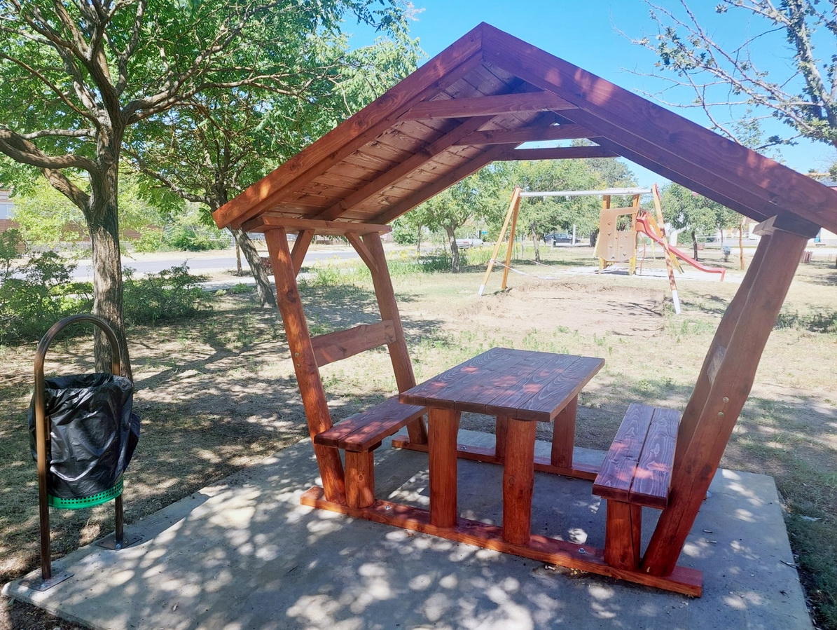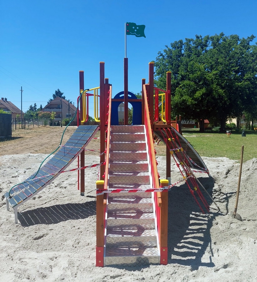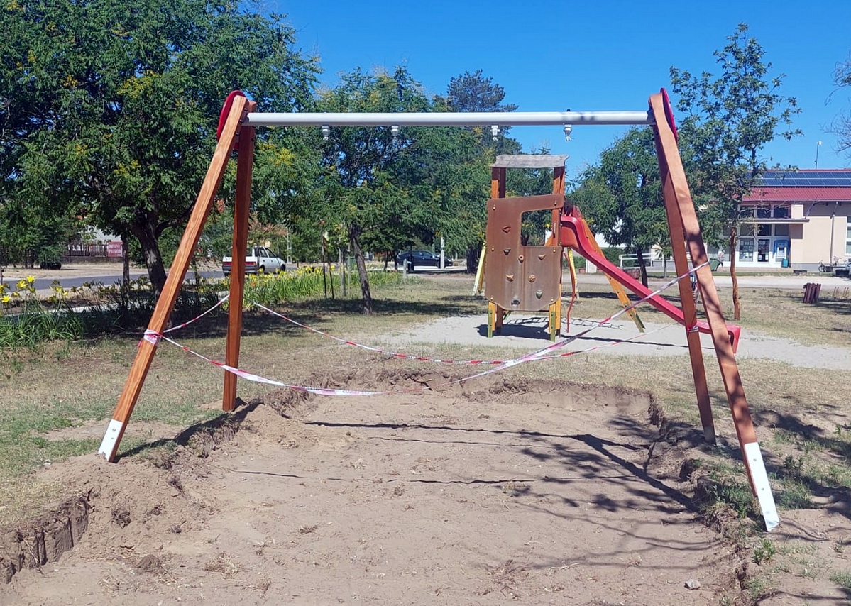 Ezen túlmenően az önkormányzat költségvetéséből 3 játszótérre helyeztünk ki fából készült pavilonokat, a fent említett kettőn kívül még a Jubileum utcába, és folyamatban van ugyanezekre a helyszínekre az ivókutak telepítése. Hulladékgyűjtőket is helyeztünk már el ezeken a területeken, de még tovább bővítjük ezek számát is. Mint ahogy a helyszínen is látható, frissen vannak telepítve a játszóeszközök, ezért körbe vannak kerítve. A teljes megkötés mintegy két hét.