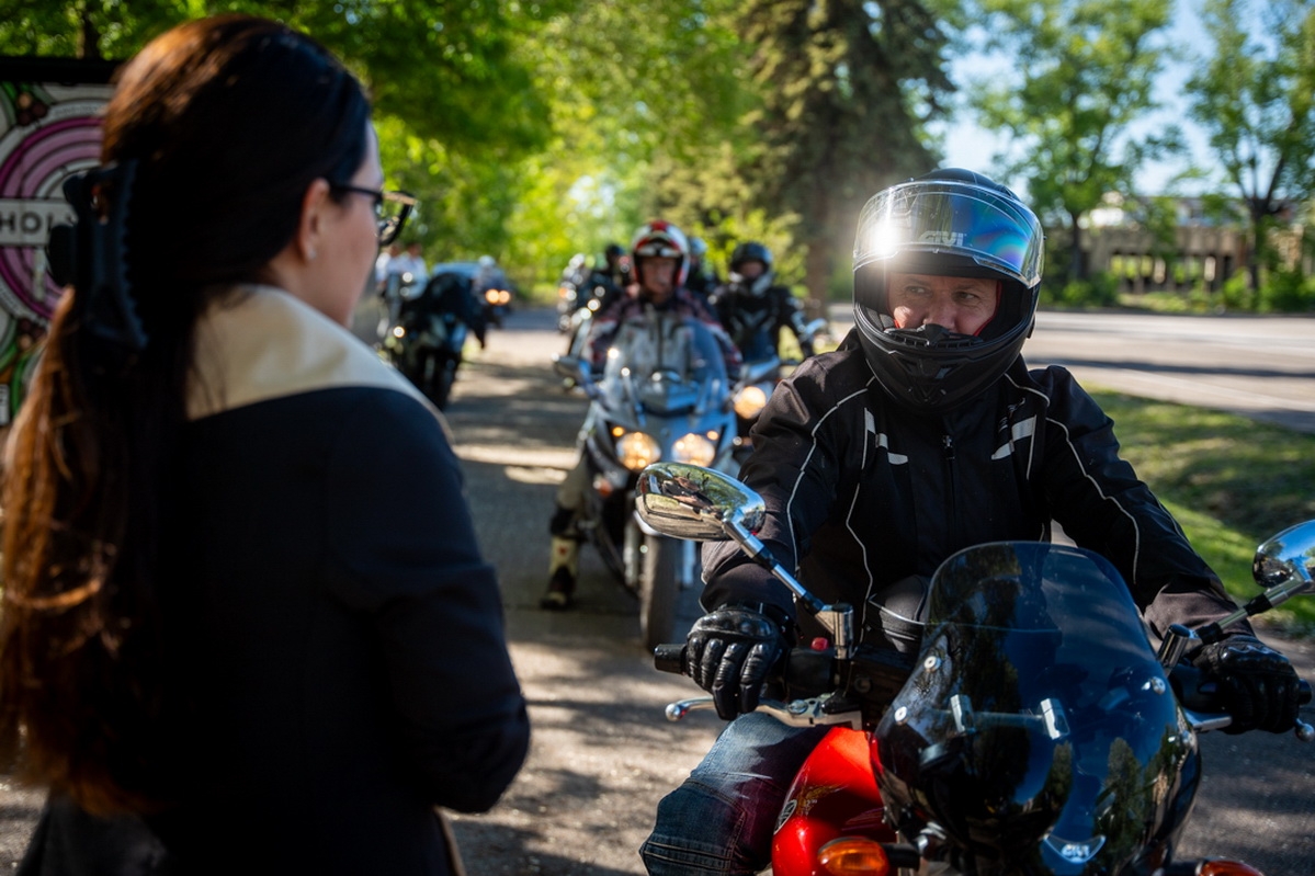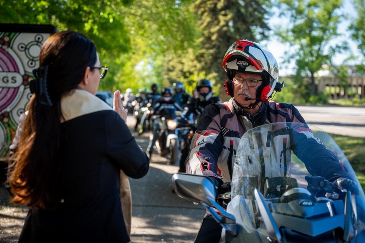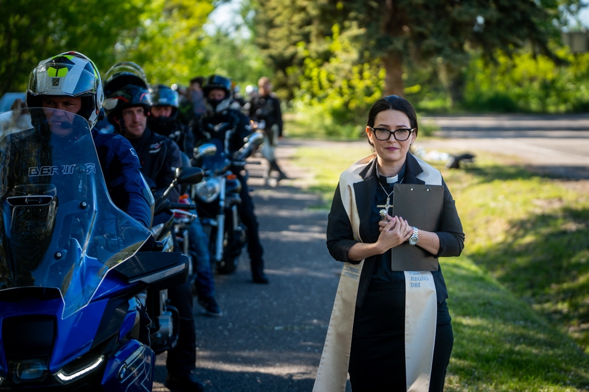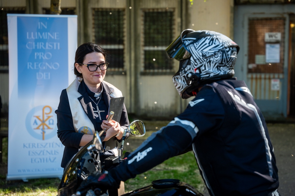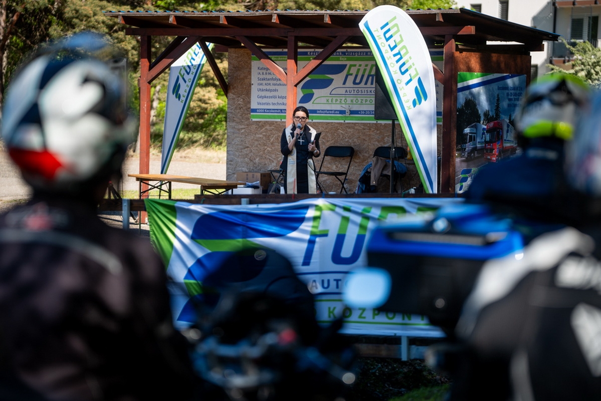 A felvonulásban résztvevő motorosokat, valamint motorjaikat indulás előtt megszentelték.