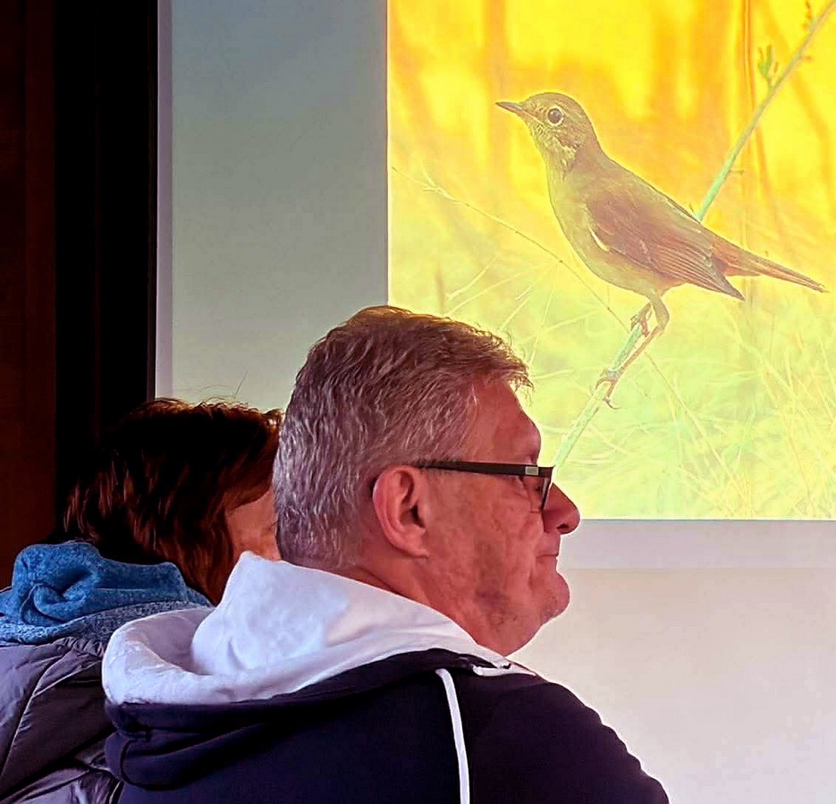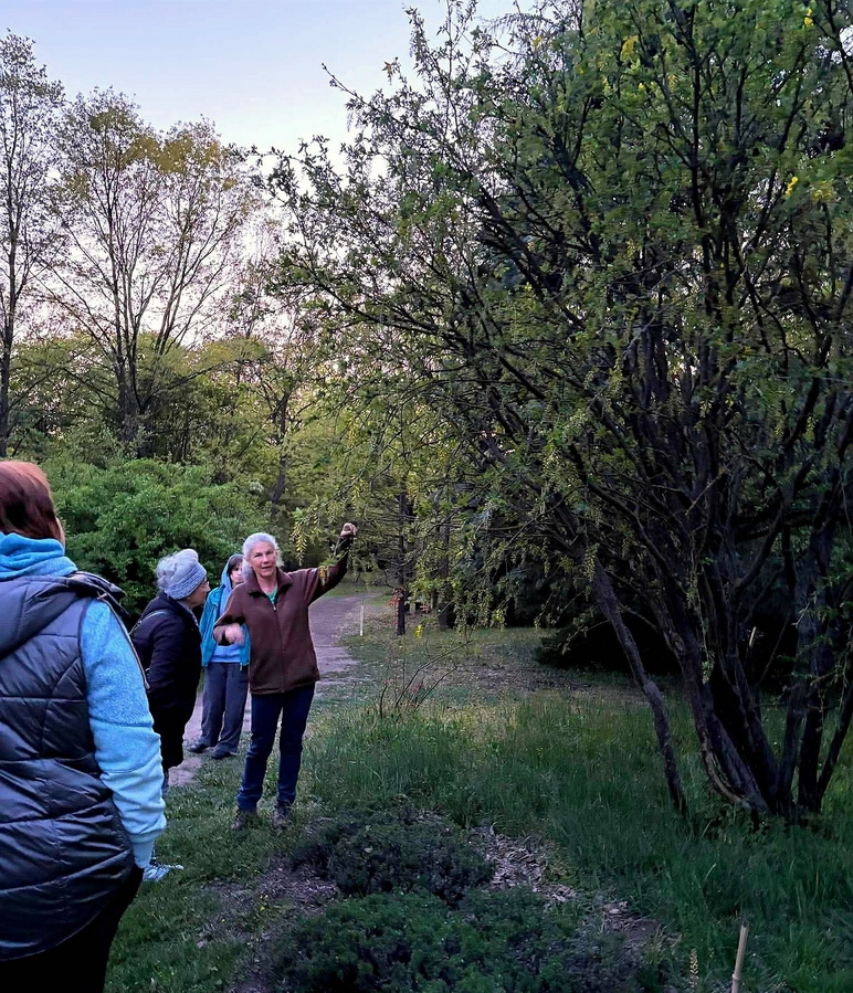 Az előadást követően Siposné Barát Mónika vezette végig a látogatókat az alkonyatba boruló arborétumban. A séta során a résztvevők nemcsak a természet csendjét élhették át, hanem a madárdal különleges világában is elmerülhettek, köztük a fülemülék gazdag és jellegzetes énekében.