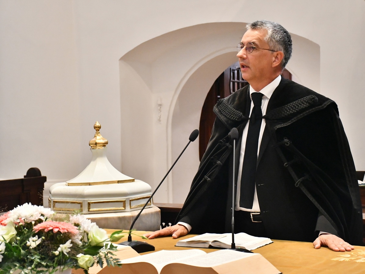 Tóth Attila, az iskola igazgatója a beszédében nagy hálaadással és szeretettel köszöntötte a gyülekezet tagjait, a fenntartó egyházközség vezetőit, továbbá tanártársait, valamint az iskola egész diákközösségét.