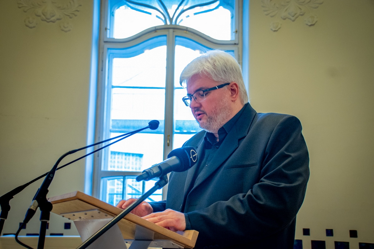 Az egyházakat és a múzeumokat a történelemszemléletük kapcsolja össze - mondta a Kulturális és Innovációs Minisztérium (KIM) közgyűjteményekért és kulturális fejlesztésekért felelős helyettes államtitkára a 12. Kortárs Keresztény Ikonográfiai Biennálé szombati megnyitóján, Kecskeméten. (Fotó: Szamler Roland)