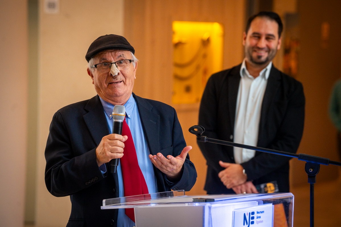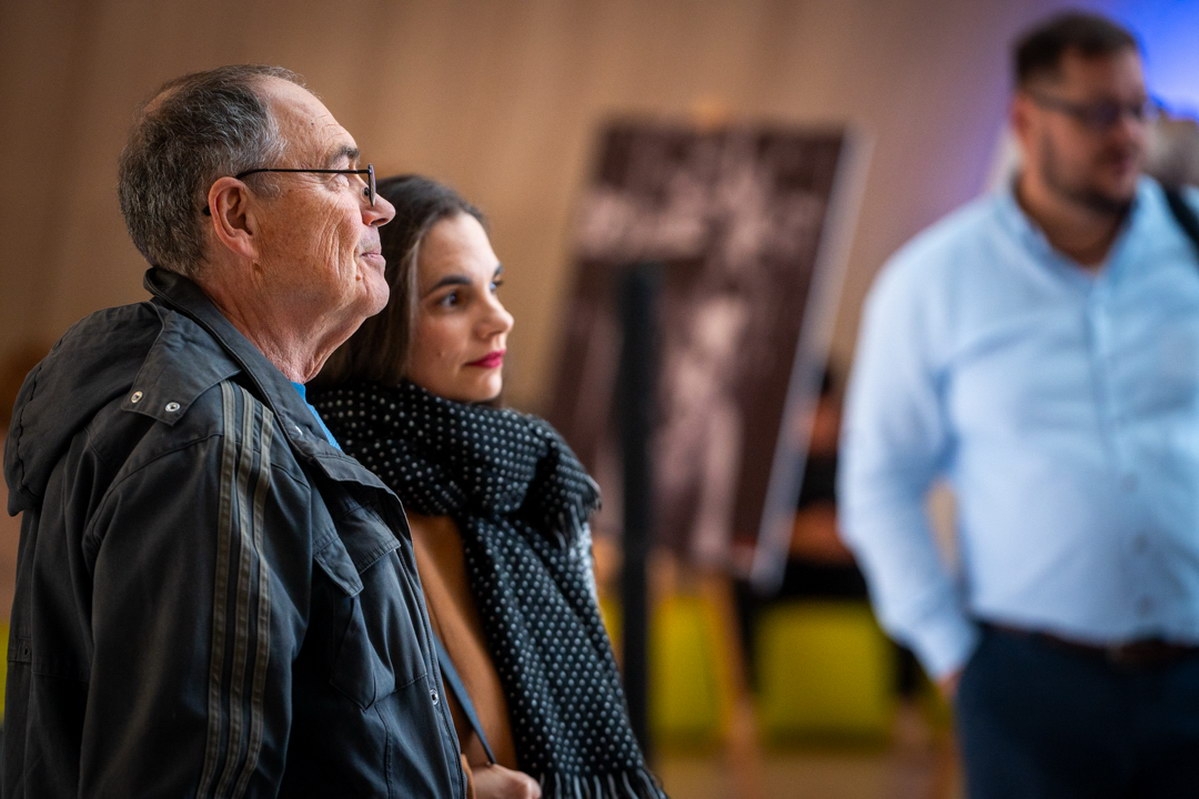 „LÉLEK-HIDAK" címmel nyílt meg Bahget Iskander nemzetközileg elismert kecskeméti fotóművész kiállítása a Neumann János Egyetem (NJE) CAMPUS épületében. A tárlat a művész emberközpontú, lírai fotográfiáit mutatja be, amelyek az emberi sorsok és kapcsolatok mélységeibe engednek betekintést. (Fotó: Szamler Roland - Szamler Photography)