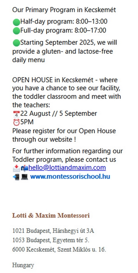 Részletek: www.montessorischool.hu