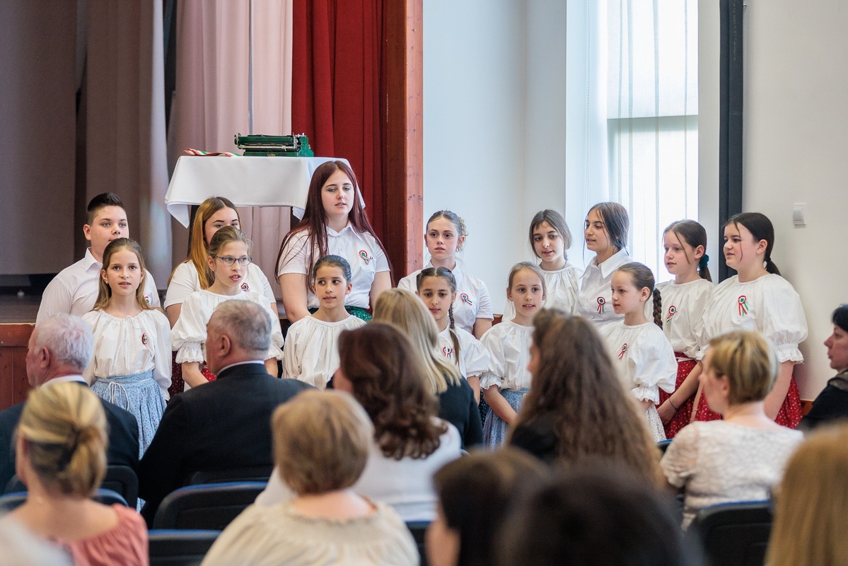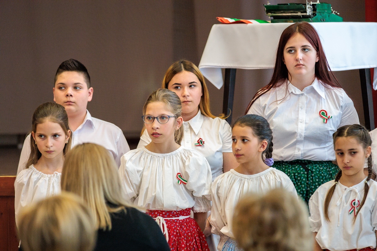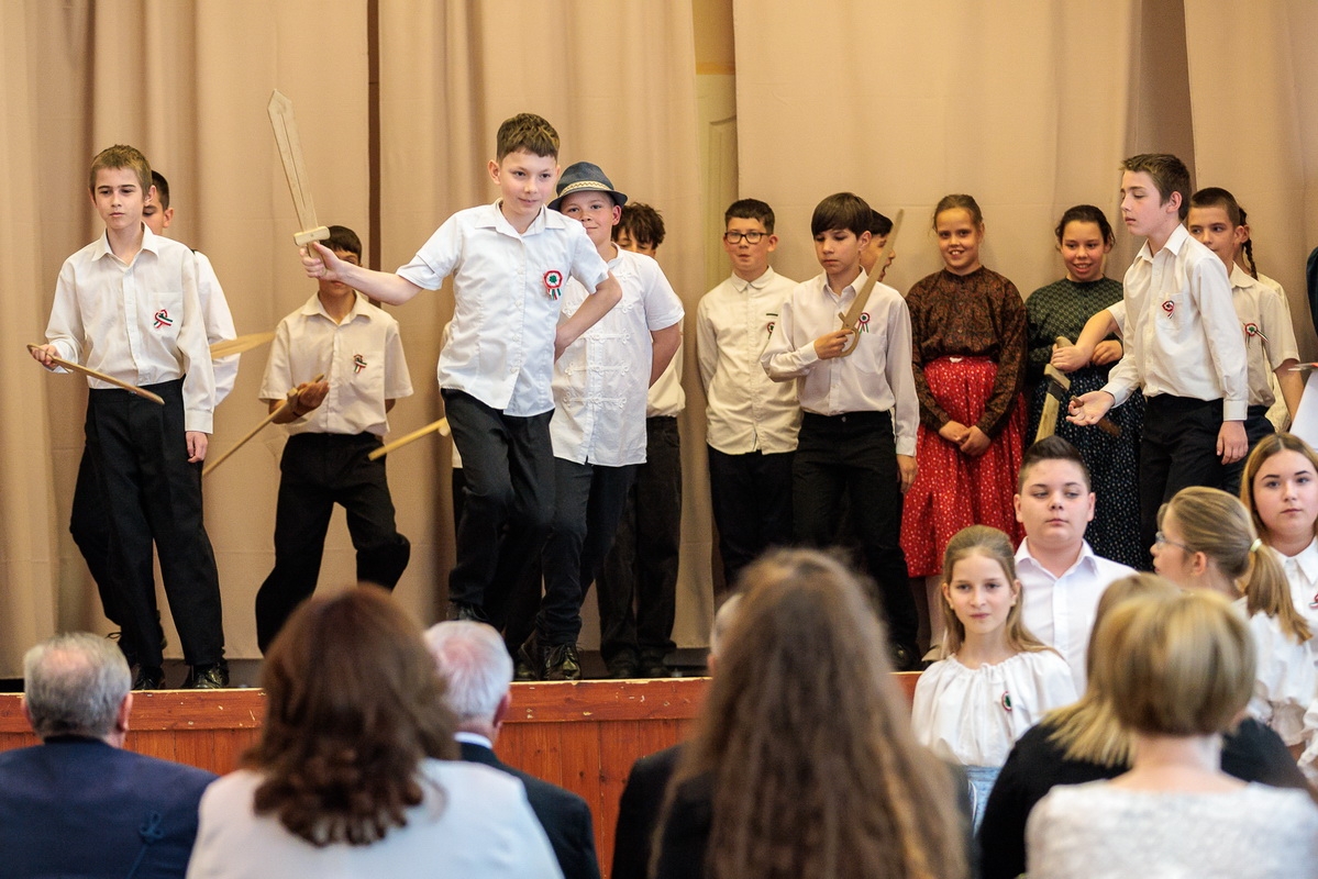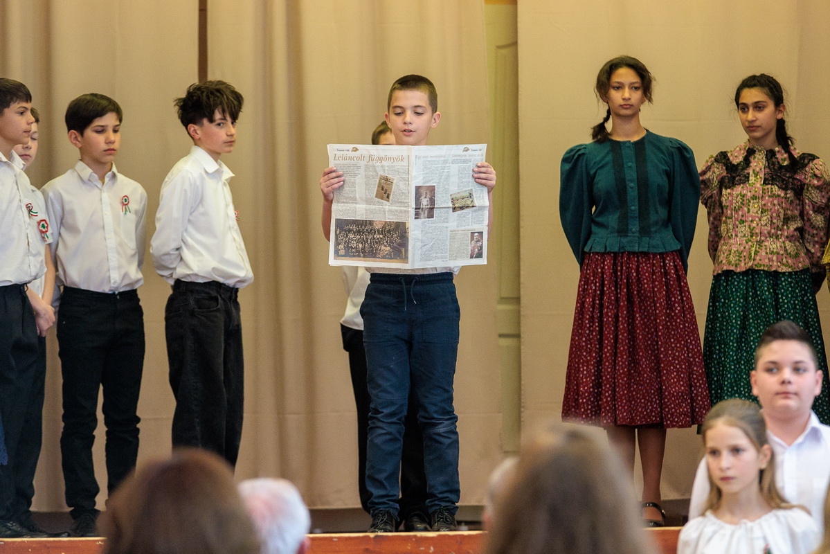 Az ünnepi műsorban a Wéber Ede Általános Iskola diákjai léptek fel, akik megható előadásukkal idézték fel a forradalom hangulatát és a korszak fontos pillanatait.