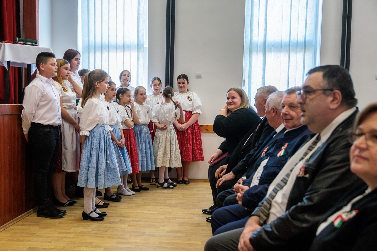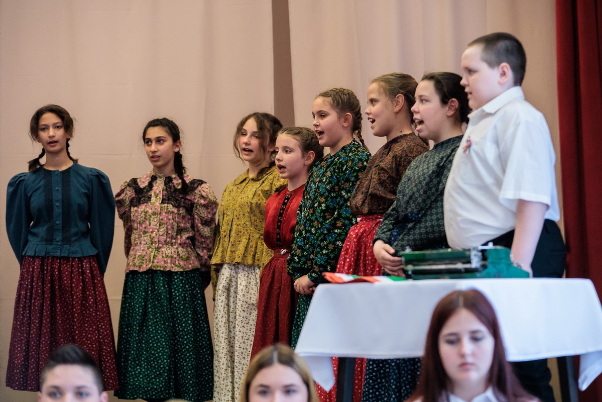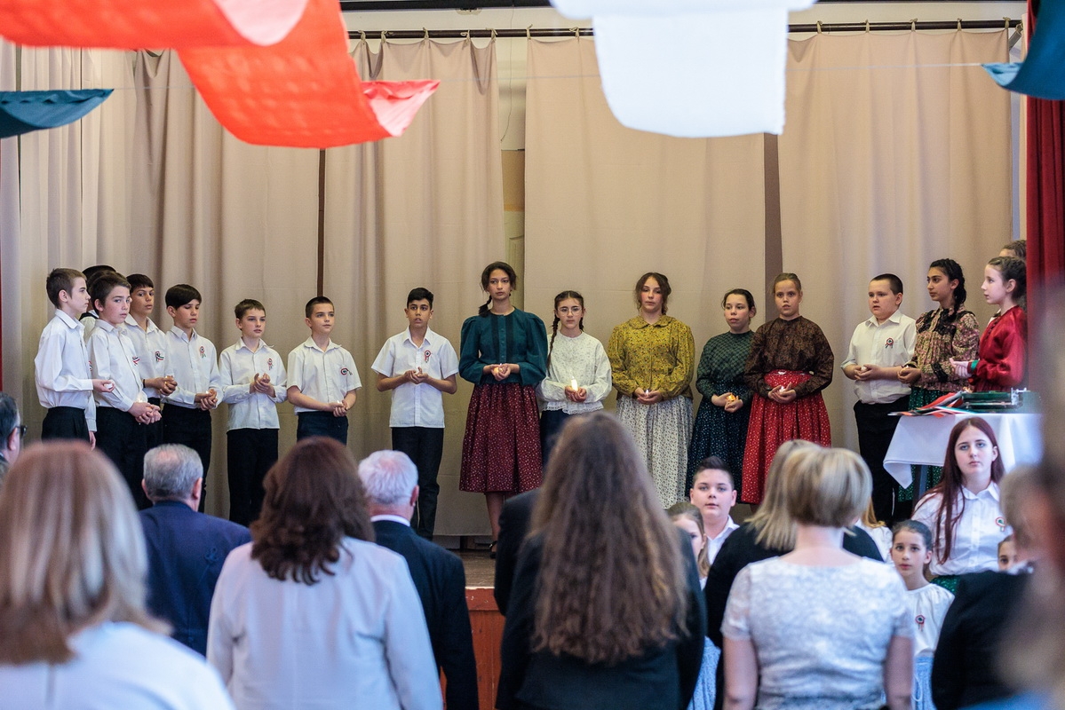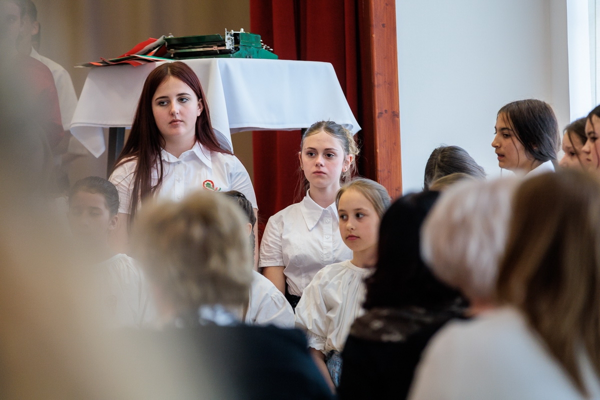 Az ünnepi műsorban a Wéber Ede Általános Iskola diákjai léptek fel, akik megható előadásukkal idézték fel a forradalom hangulatát és a korszak fontos pillanatait.