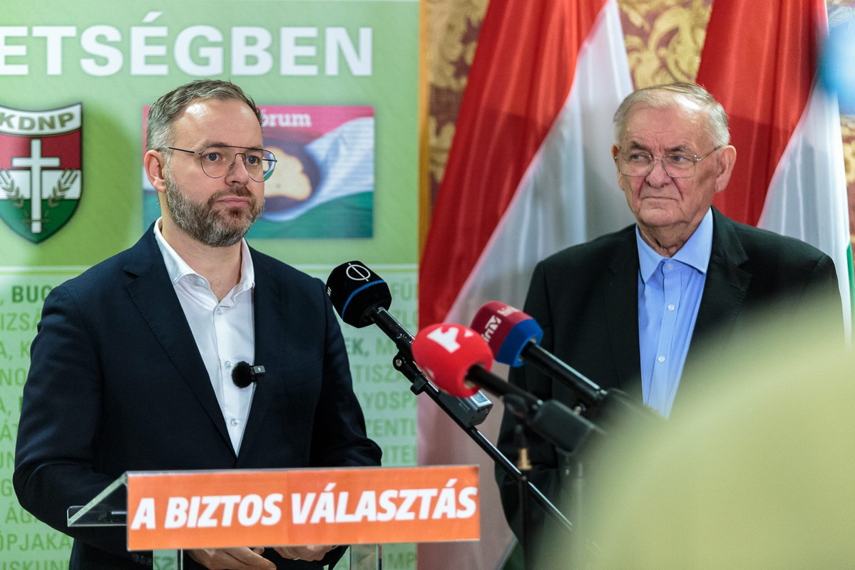 Orbán Balázs, a miniszterelnök politikai igazgatója és a Fidesz országos kampányfőnöke országjáró fórumot tartott Kunszálláson a Fidesz-KDNP rendezvényén, amelyre Lezsák Sándor országgyűlési képviselő hívta meg. Az esemény előtt sajtótájékoztatón beszéltek Magyarország európai és nemzetközi helyzetéről, valamint a kampány fő üzeneteiről. (Fotó: Vincze József)