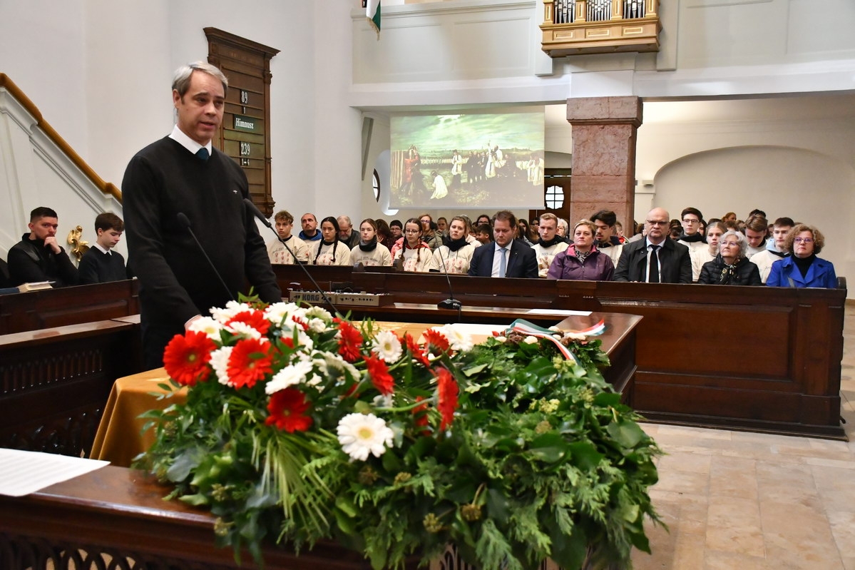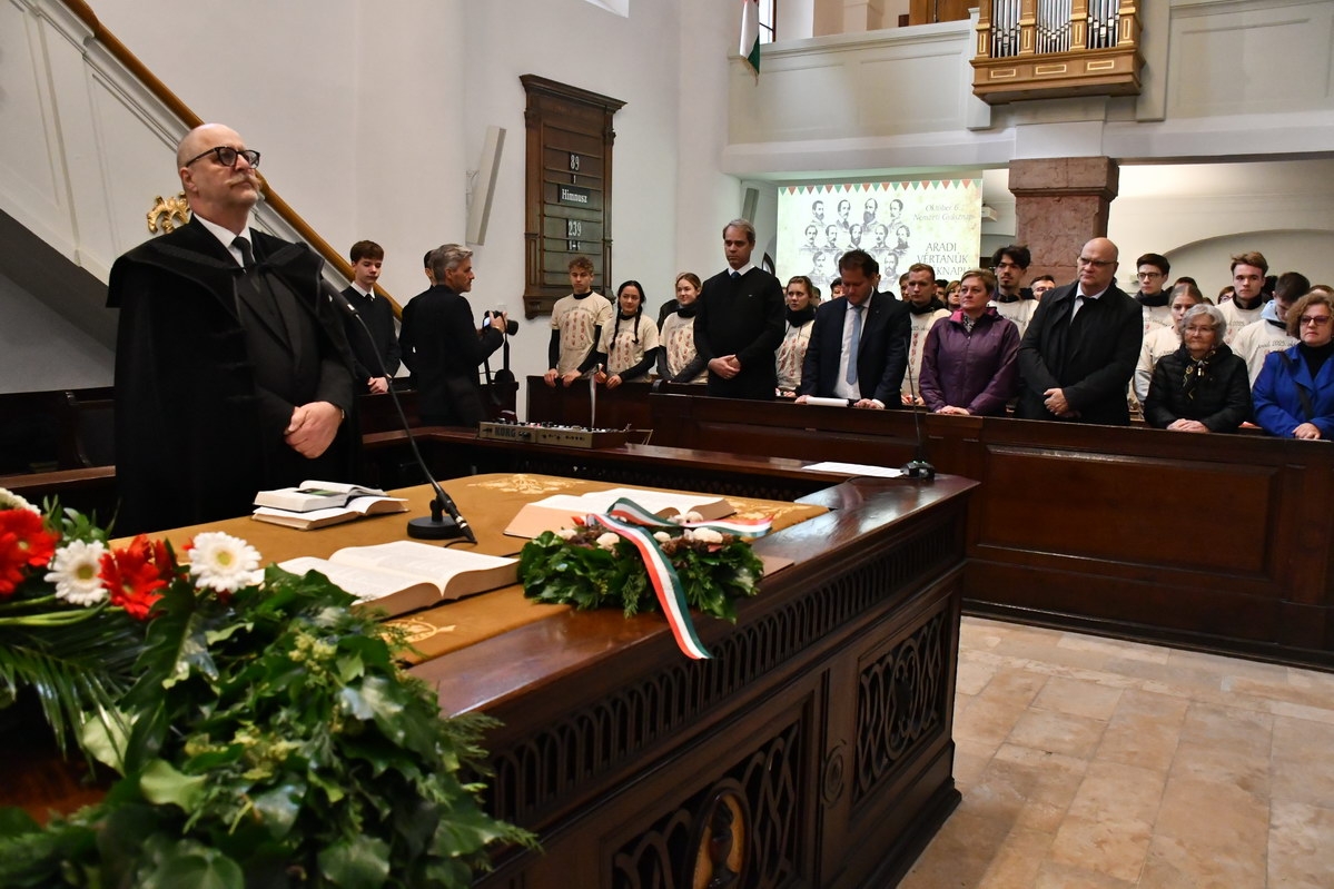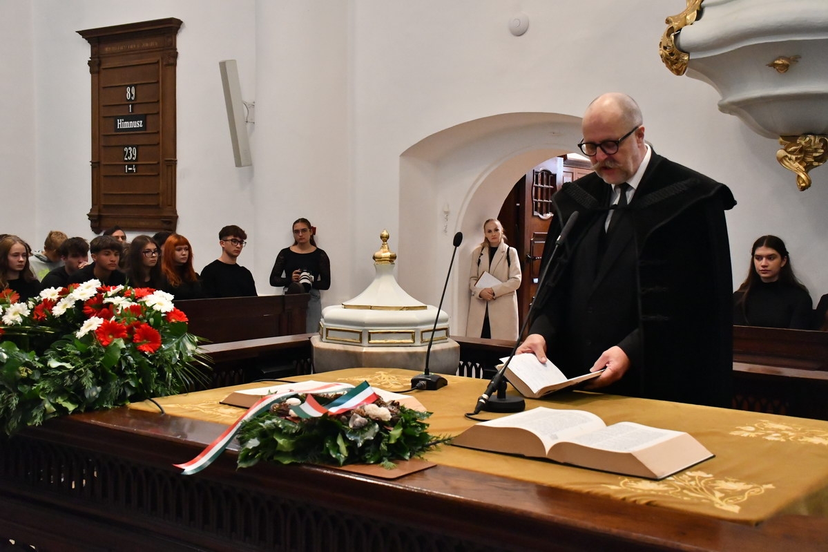 A Kecskeméti Református Gimnázium diákjainak megemlékezése után Kuti József református lelkész tartott áhítatott, majd Tóth Imre, a gimnázium igazgatója köszöntötte a kerékpárosokat, és kívánt jó utat az Aradra indulóknak.