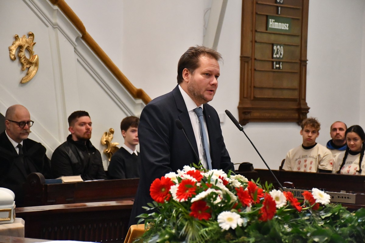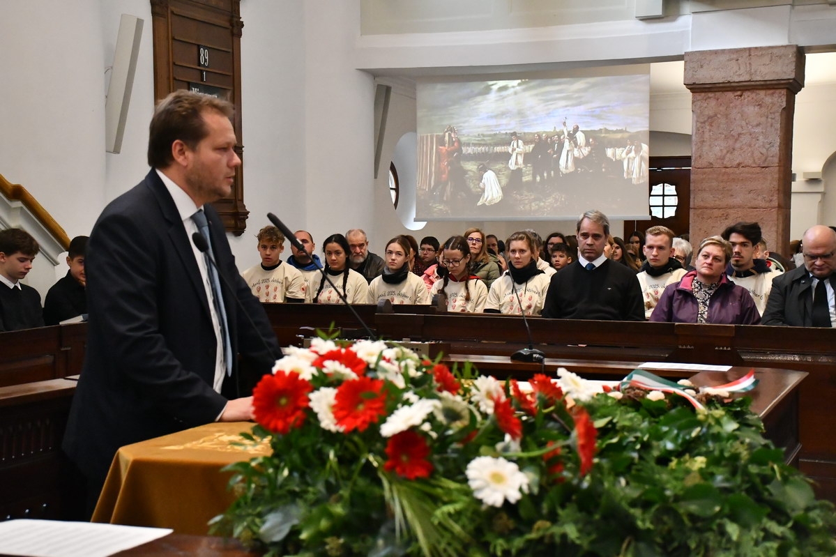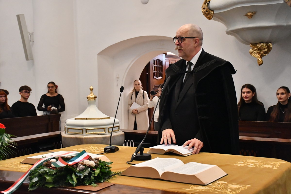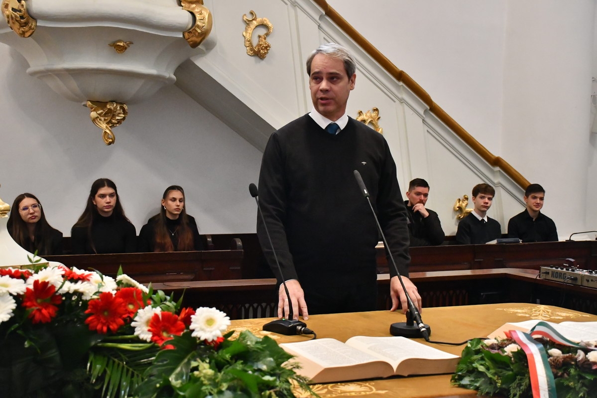 A Kecskeméti Református Gimnázium diákjainak megemlékezése után Kuti József református lelkész tartott áhítatott, majd Tóth Imre, a gimnázium igazgatója köszöntötte a kerékpárosokat, és kívánt jó utat az Aradra indulóknak.
