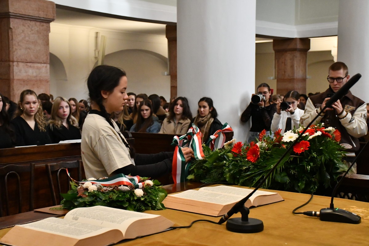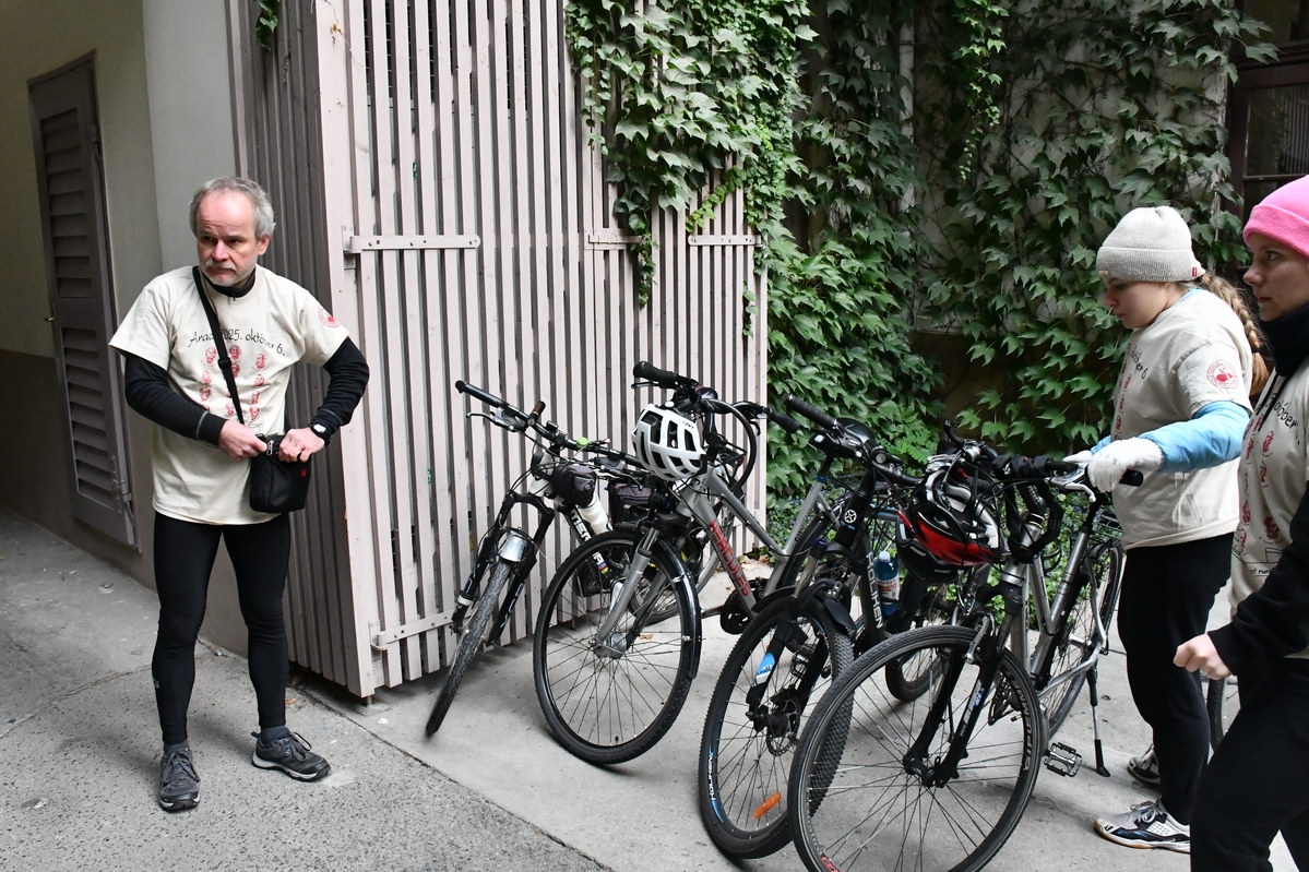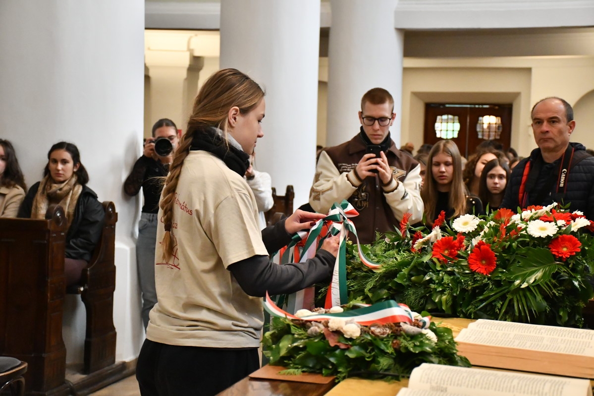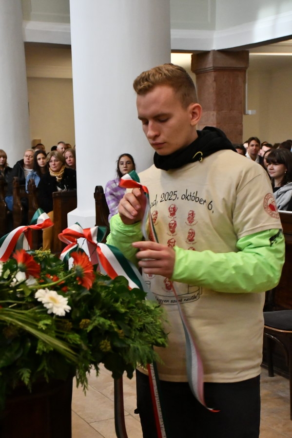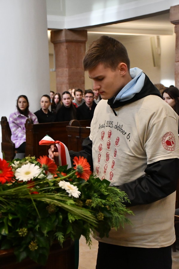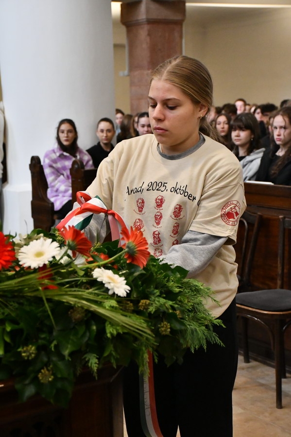 A péntek reggeli búcsúztatón a fenntartó egyházközség, az iskola és a kerékpáros emléktúrát támogatók emlékszalagot tűztek arra a koszorúra, amelyet majd október 6-án az aradi vesztőhelyen emelt emlékműnél helyeznek el a kerékpárosok a Kecskeméti Reformárus Gimnázium nevében.