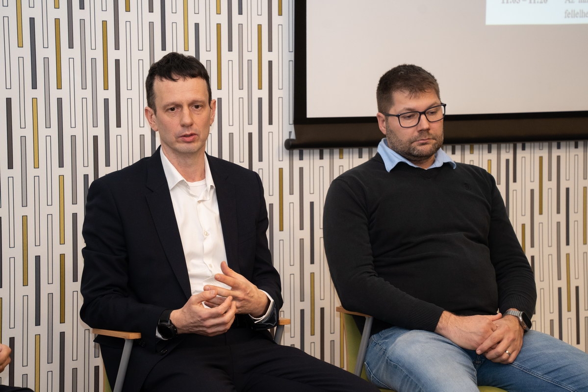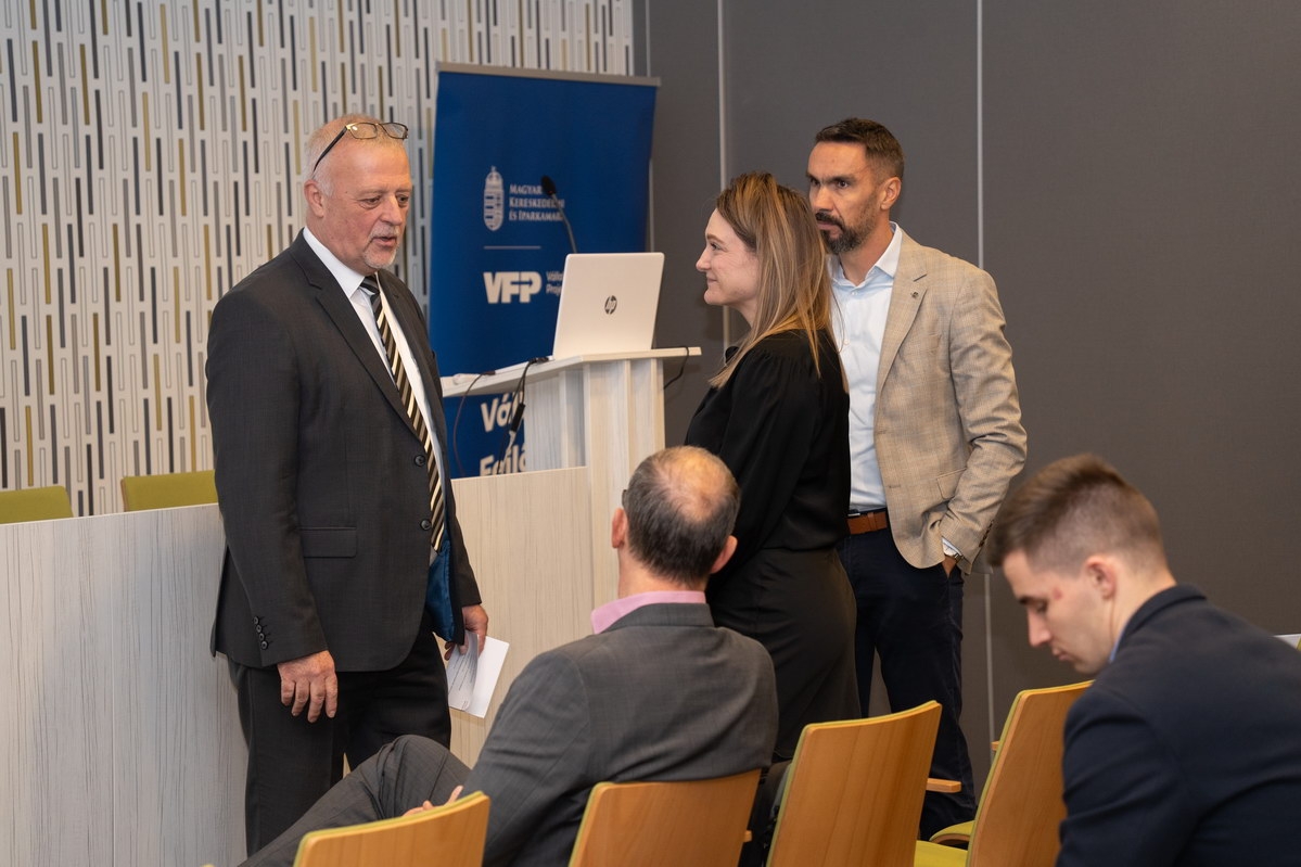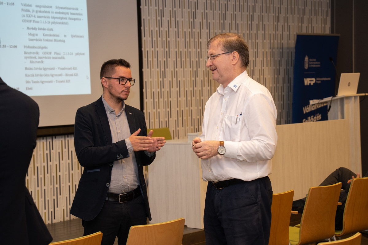 A délelőtt zárásaként pódiumbeszélgetésre került sor, amelyen a GINOP Plusz 2.1.3-24 pályázat nyertesei és innovációs tanácsadók osztották meg tapasztalataikat. A beszélgetés résztvevői között volt Halász István (Vonalvezető Kft.), Kuczik István Géza (Rézmű Kft.) és Bús Tamás (Tometal Kft.).