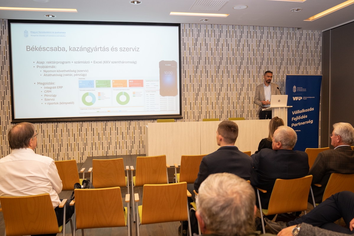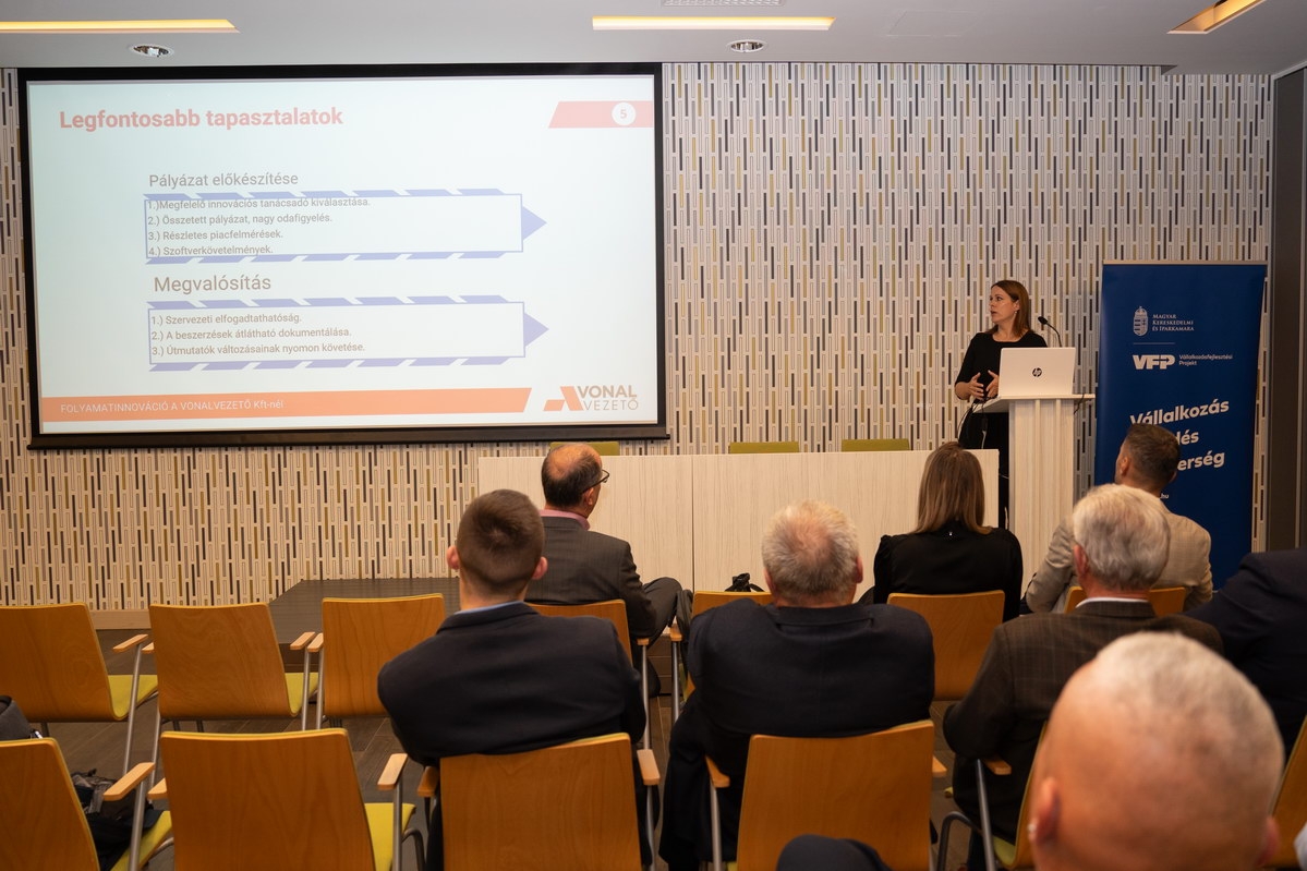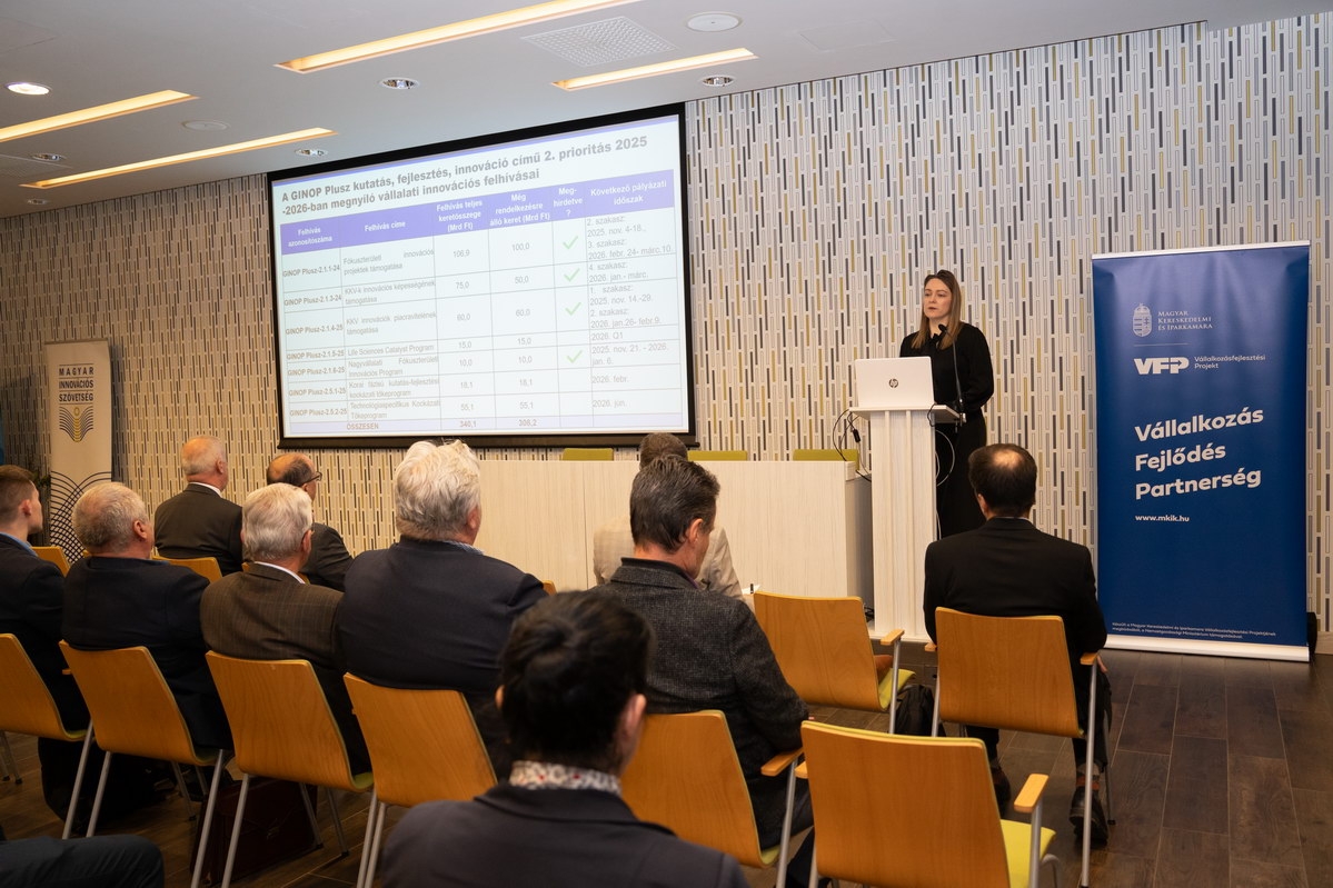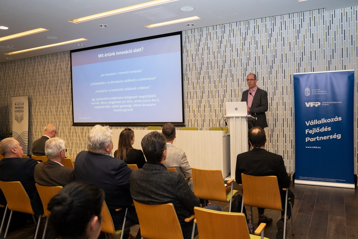 A KKV-k innovációs képességeinek erősítéséről Halászné Kremzer Nóra, a Vonalvezető Kft. tulajdonosa beszélt, kiemelve a GINOP Plusz 2.1.3-24 program tapasztalatait. A szellemi tulajdon védelméről Tóth Gábor, a Szellemi Tulajdon Nemzeti Hivatalának iparjogvédelmi ügyintézője tartott tájékoztatót. A vállalati innovációk gyakorlati megvalósításáról Herbály István, az MKIK Innovációs Szakmai Bizottságának elnöke számolt be, több sikeres példát is bemutatva.