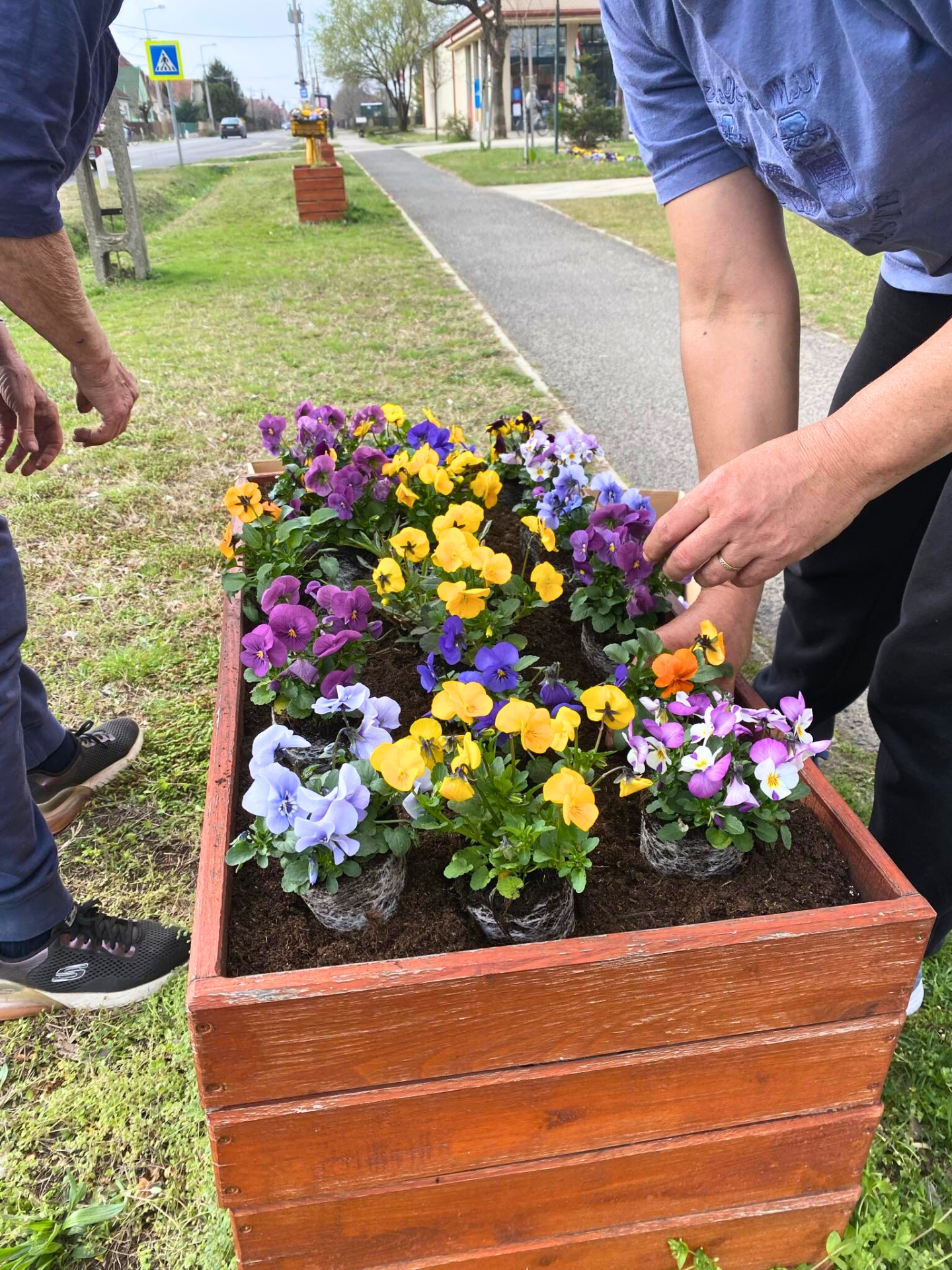 Színes virágokkal ültették be Hetényegyháza főtérén a virágládákat