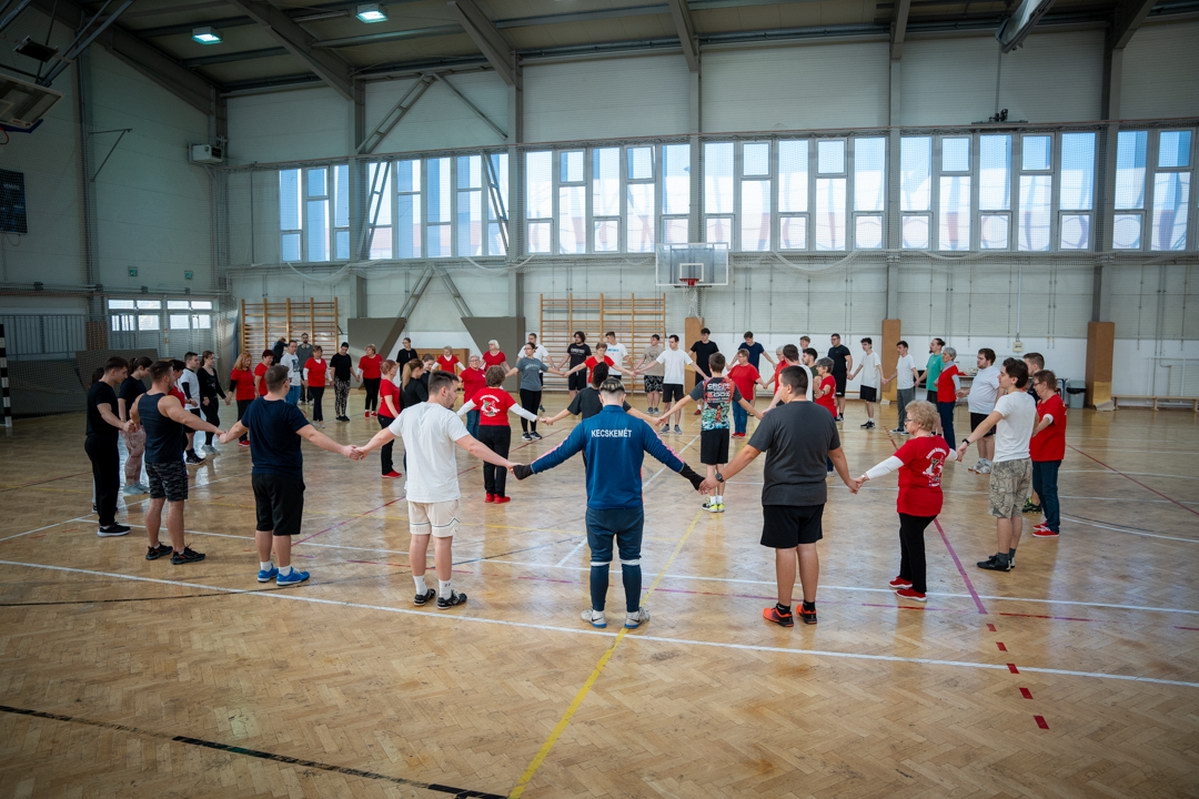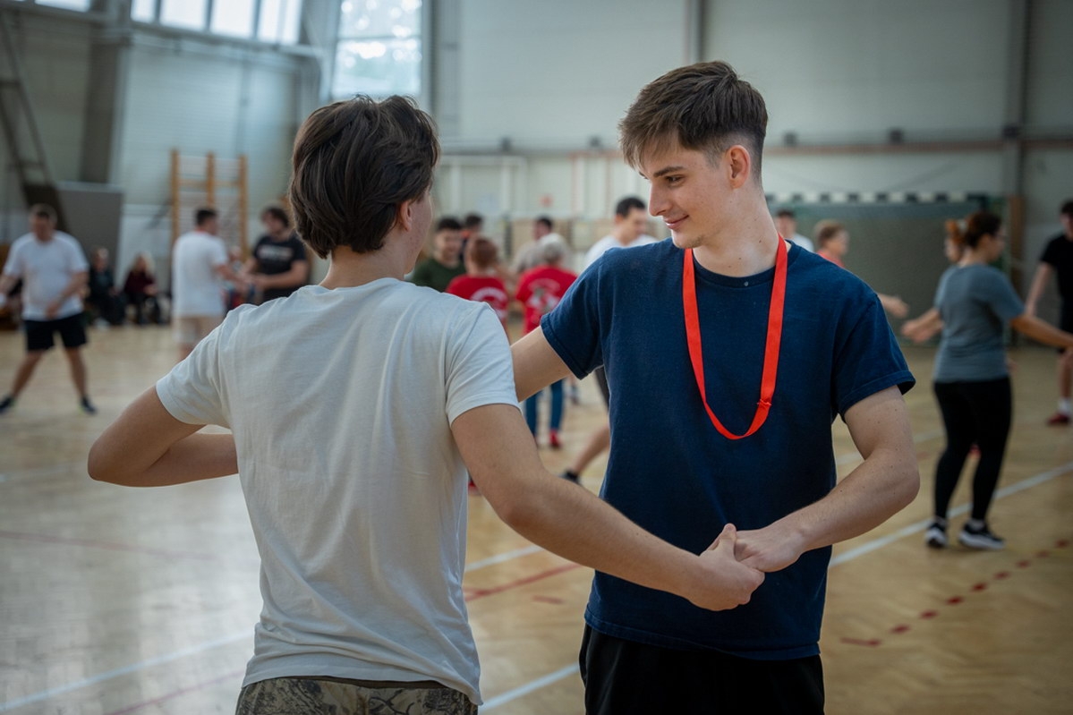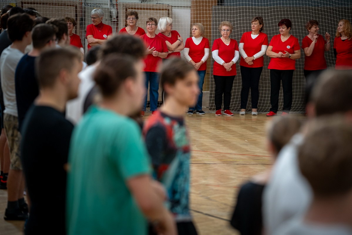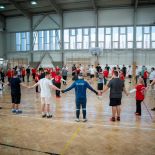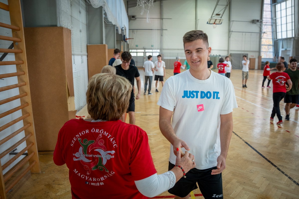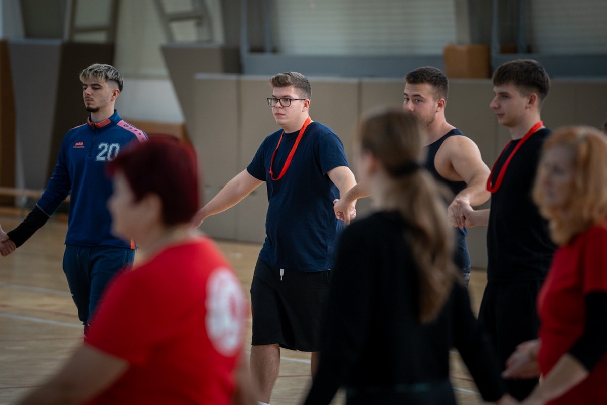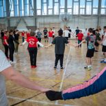 Rendhagyó bemelegítéssel kezdődött 2025. november 10-én, hétfőn reggel 8 órakor a testnevelésóra a Neumann János Egyetem GAMF Karának Törös Olga Sportcsarnokában. Az eseményen két generáció találkozott: fiatal egyetemisták és idősebb szeniorok vettek részt közösen az örömtáncban, amely a mozgás és a párbeszéd különleges formájaként szolgált. (Fotó: Szamler Roland - Szamler Photography)