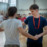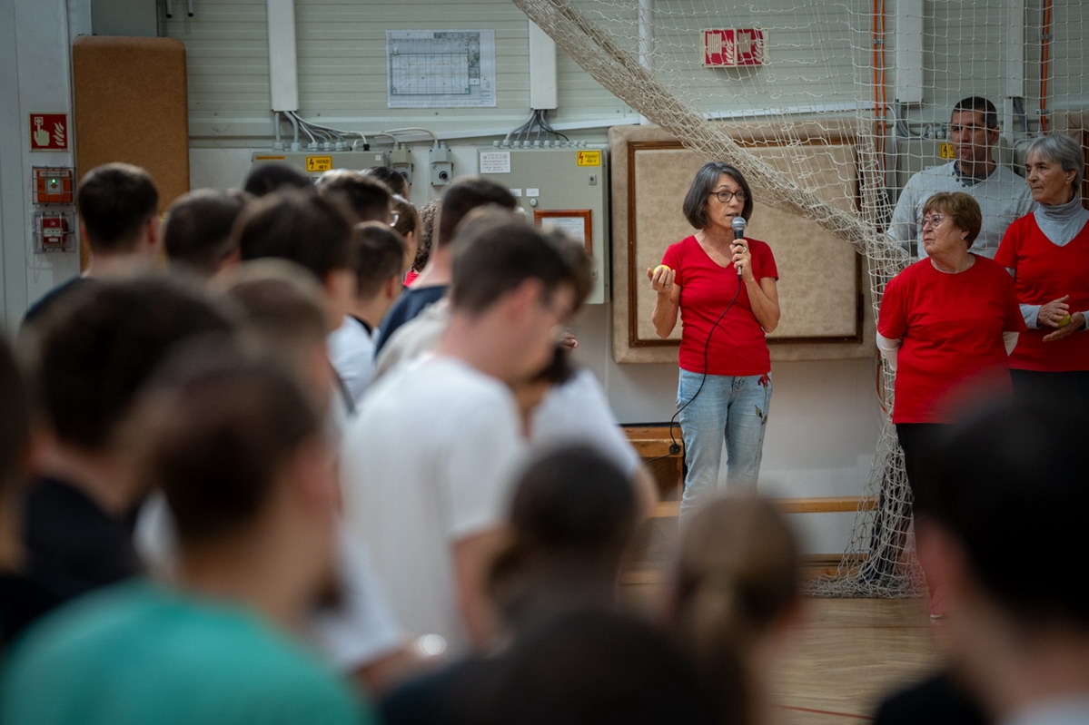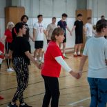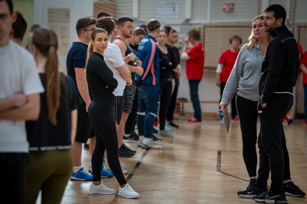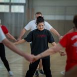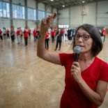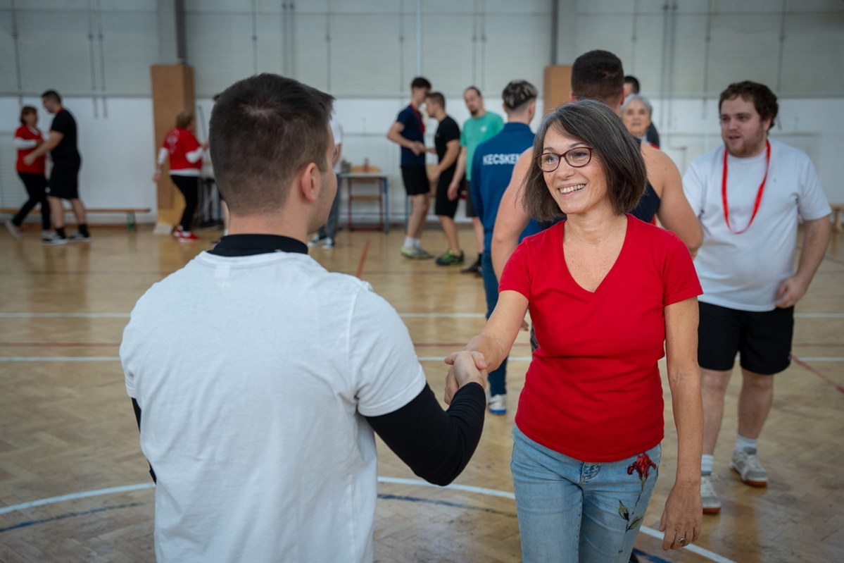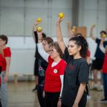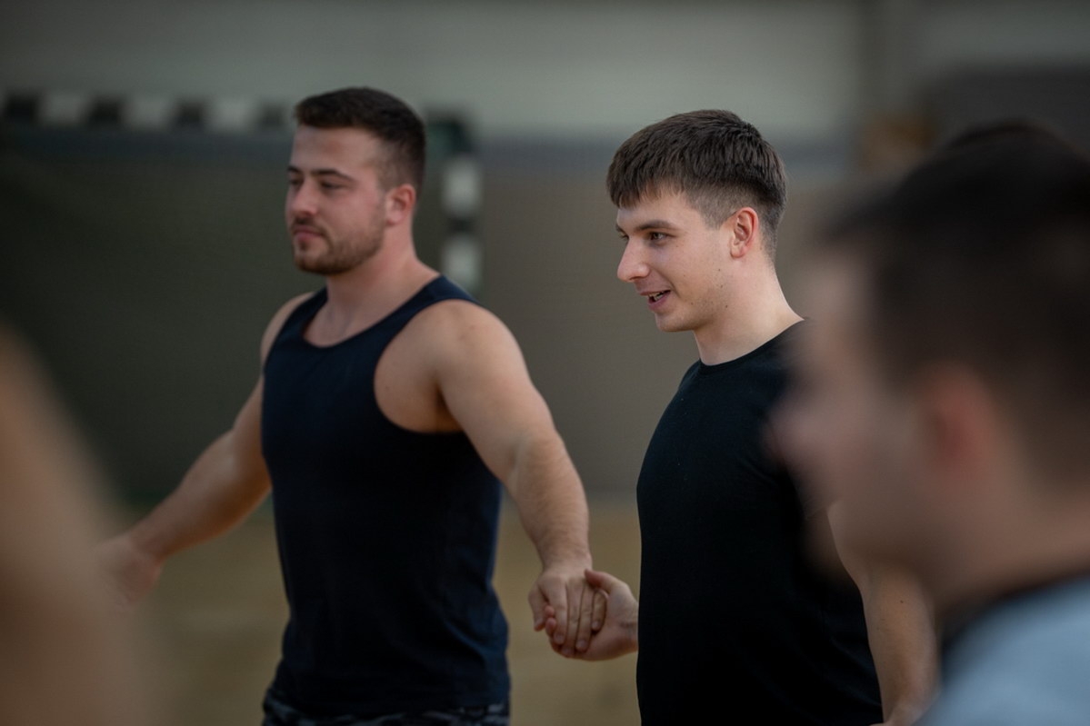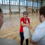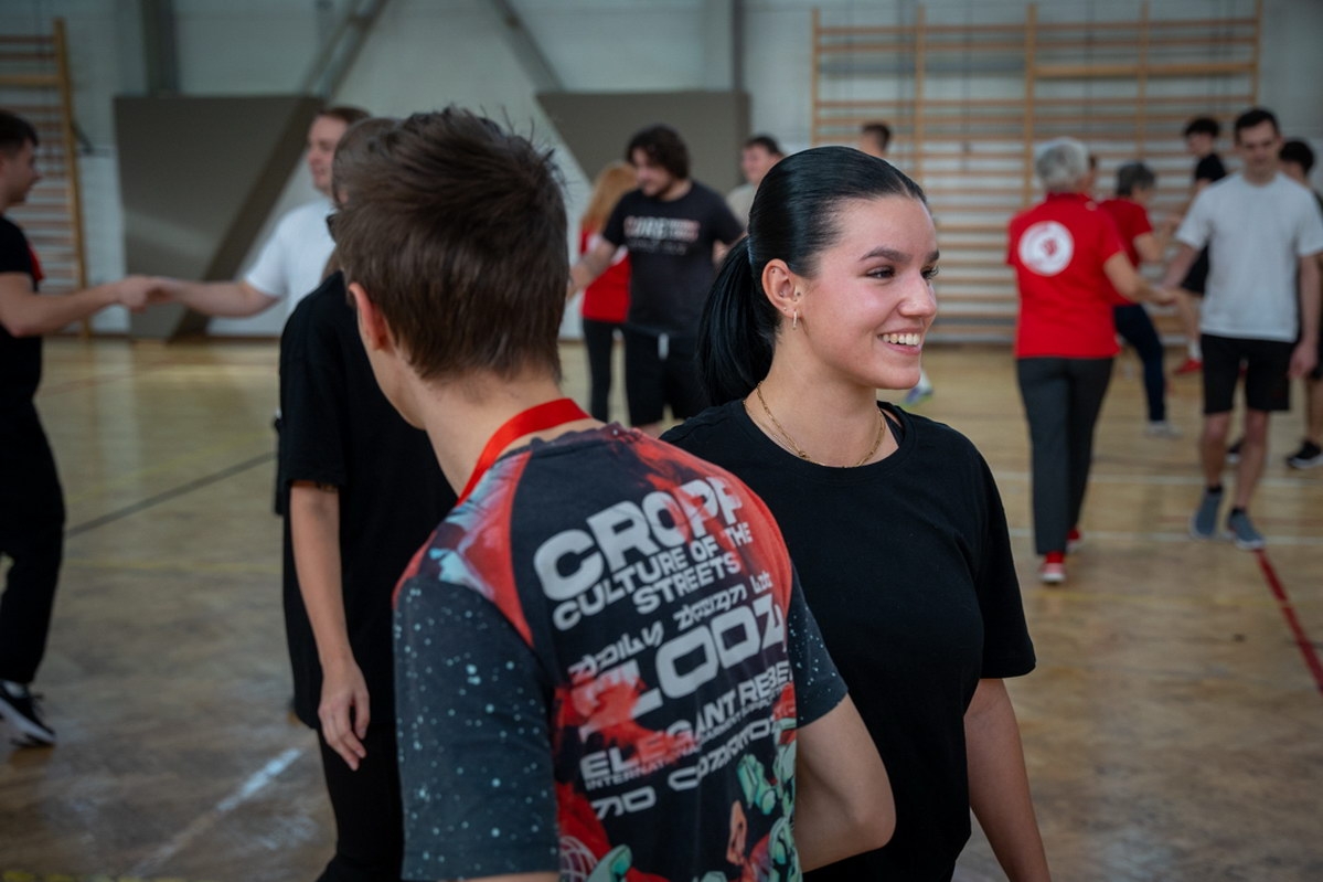 Rendhagyó bemelegítéssel kezdődött 2025. november 10-én, hétfőn reggel 8 órakor a testnevelésóra a Neumann János Egyetem GAMF Karának Törös Olga Sportcsarnokában. Az eseményen két generáció találkozott: fiatal egyetemisták és idősebb szeniorok vettek részt közösen az örömtáncban, amely a mozgás és a párbeszéd különleges formájaként szolgált. (Fotó: Szamler Roland - Szamler Photography)